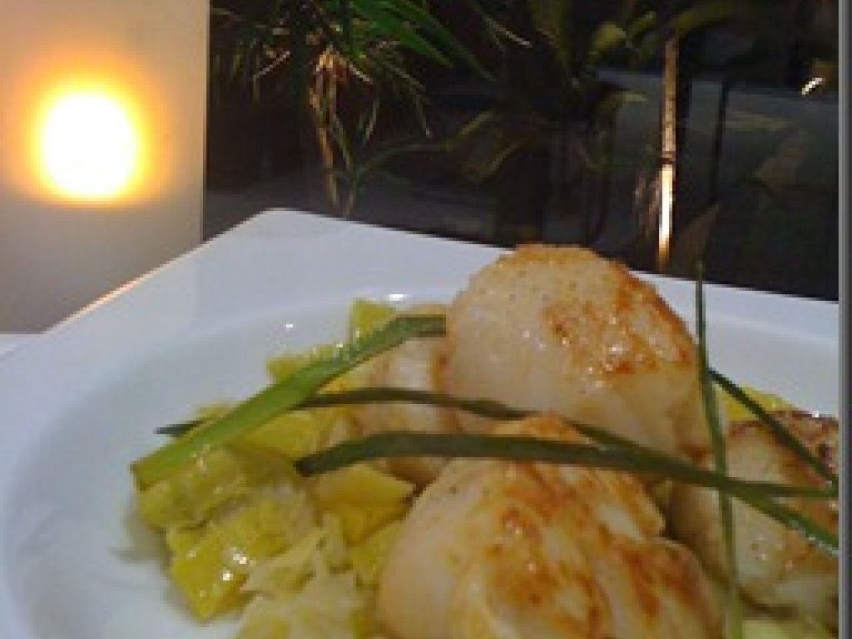 Saint-jacques roties et fondue de poireaux Platfacile32 min315 Kcal Envoyer cette recette à un ami Imprimer cette page Poser une question à l'auteur Publier votre photo de cette recette Ingrédients 4 18 noix de saint-jacques 6 poireaux 2 cuillères à soupe d'huile de noisette 60 g de beurre sel poivre du moulin Coût estimé: 17.29Euros€ (4.32€/part)