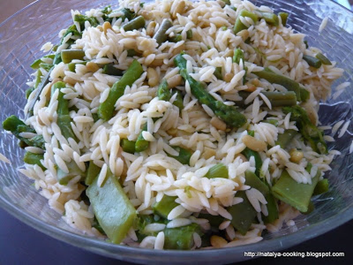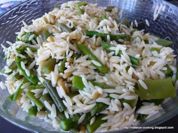 Salade d'orzo aux légumes verts "primavera" votez maintenant PrécédentSuivant Platfacile30 min Envoyer cette recette à un ami Imprimer cette page Poser une question à l'auteur Publier votre photo de cette recette Ingrédients 5 500 g de pâtes orzo 500 g d'asperges vertes 300 à 500 g d'haricots verts 300 à 500 g de mangetout ou des pois gourmands 250 g de flageolet La sauce : 4 cuillères à soupe d'huile d'olive de bonne qualité 2 cuillères à soupe d'huile d'olive à l'ail Jus d'1 citron Basilic persil Sel poivre
