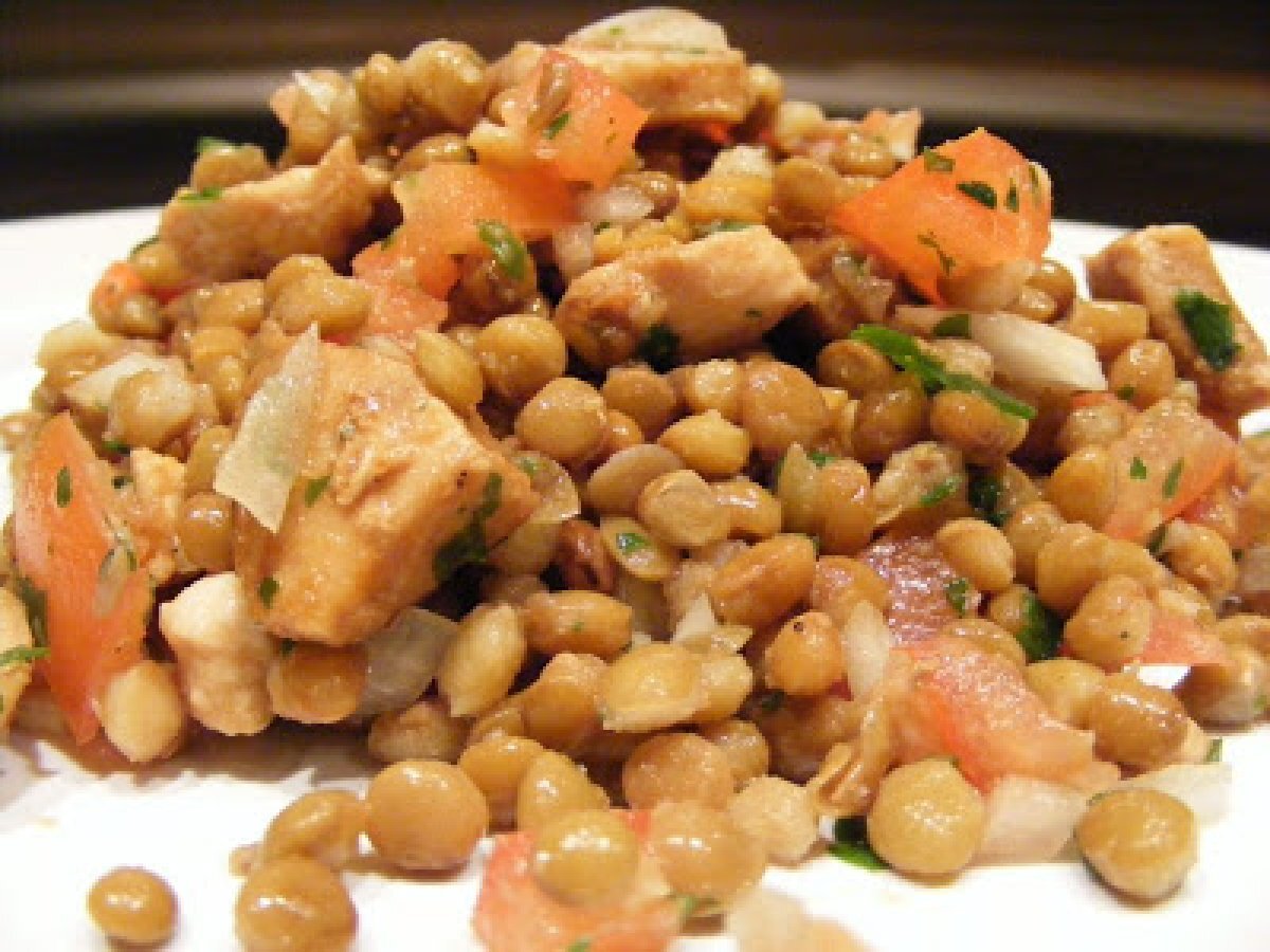 Salade de lentilles au poulet votez maintenant PrécédentSuivant Platfacile50 min260 Kcal Envoyer cette recette à un ami Imprimer cette page Poser une question à l'auteur Publier votre photo de cette recette Ingrédients 3 400 g de lentilles préparées 2 tomates 1 gros filet de poulet 2 petits oignons frais 1 cuillère à soupe d'huile d'olive du persil plat 1 cuillère à soupe de vinaigre de Xérès 1 cuillère à soupe de sauce soja du poivre Coût estimé: 2.67Euros€ (0.89€/part)