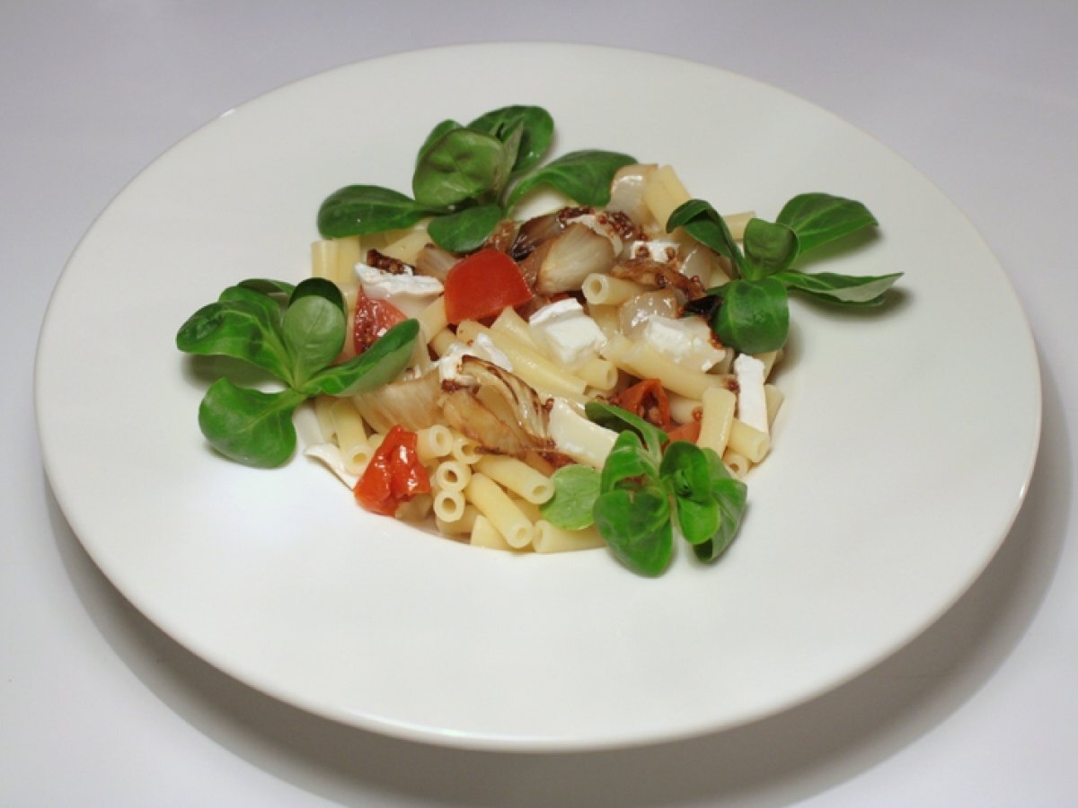 Salade de macaroni au fenouil, chèvre & tomates séchées