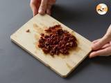 Coupez la mozzarella et les tomates séchées en petits morceaux.