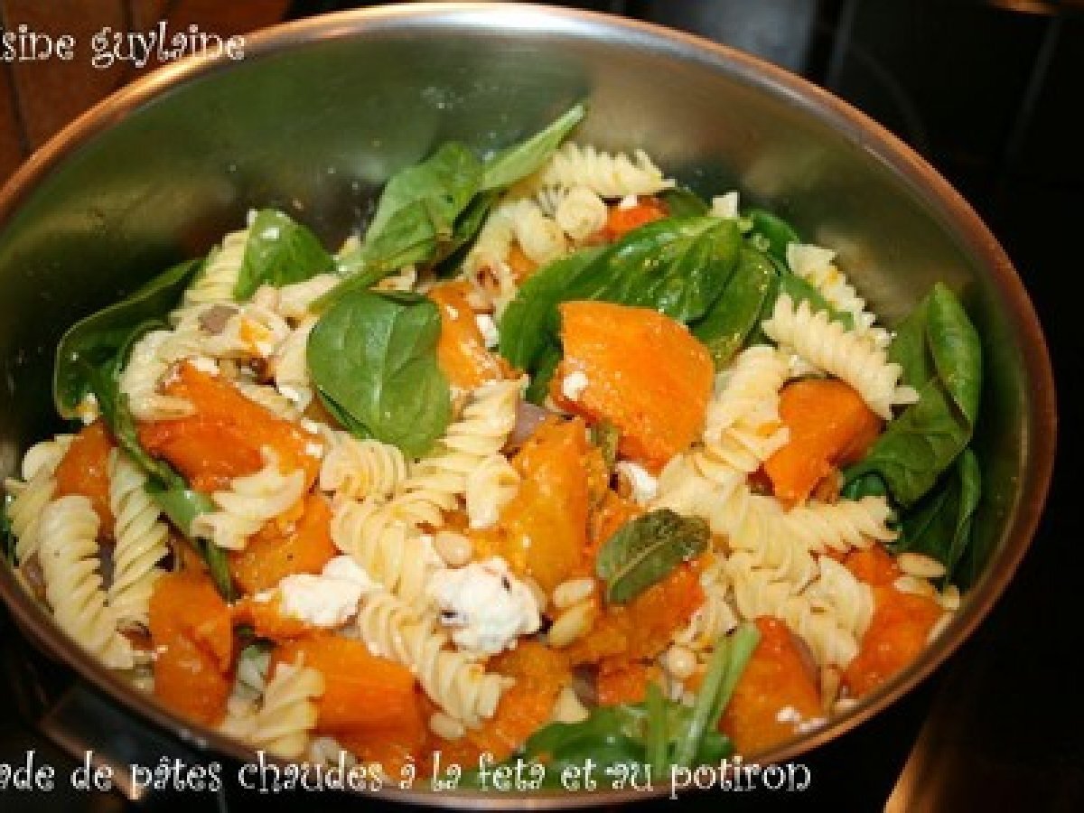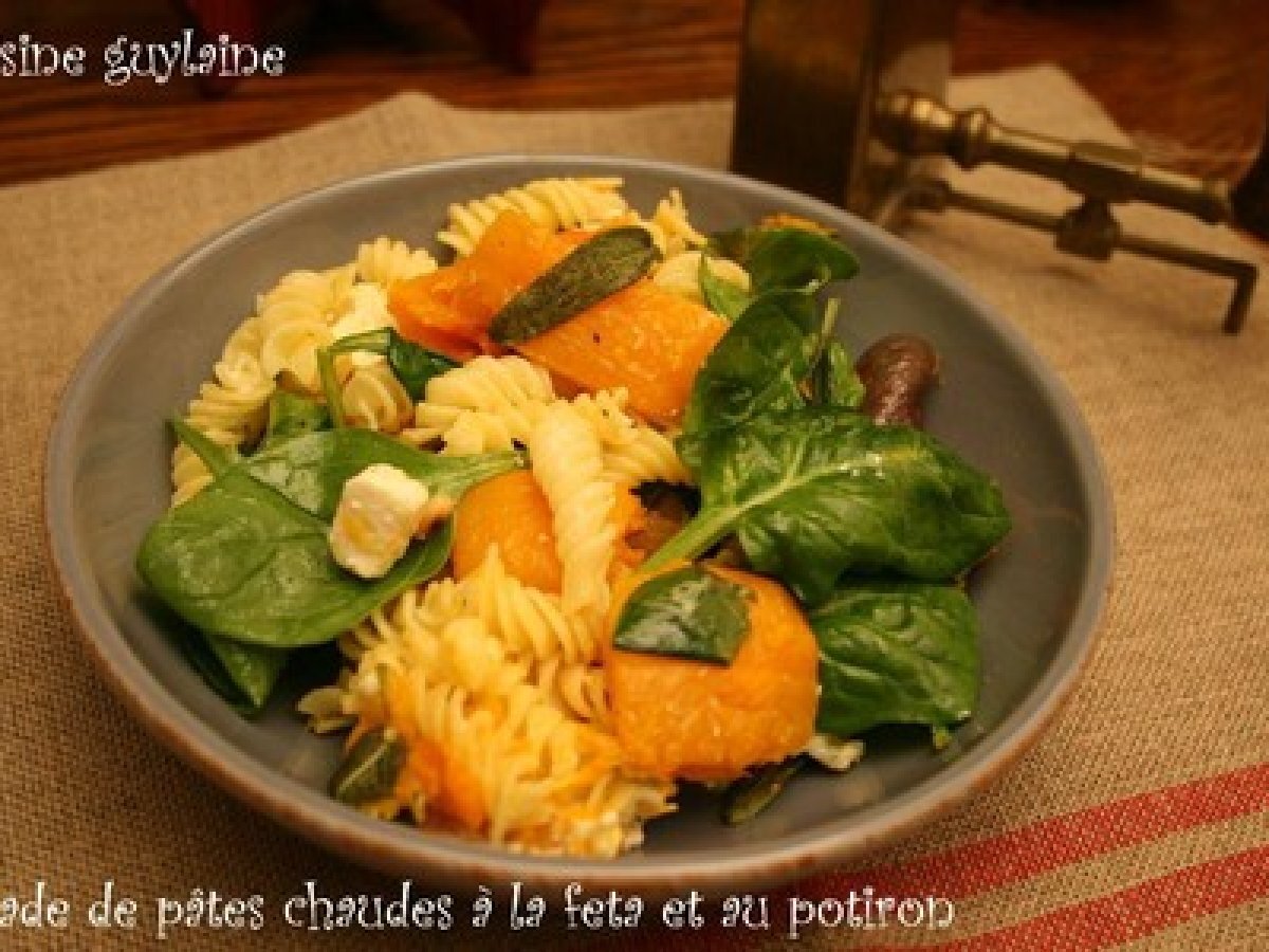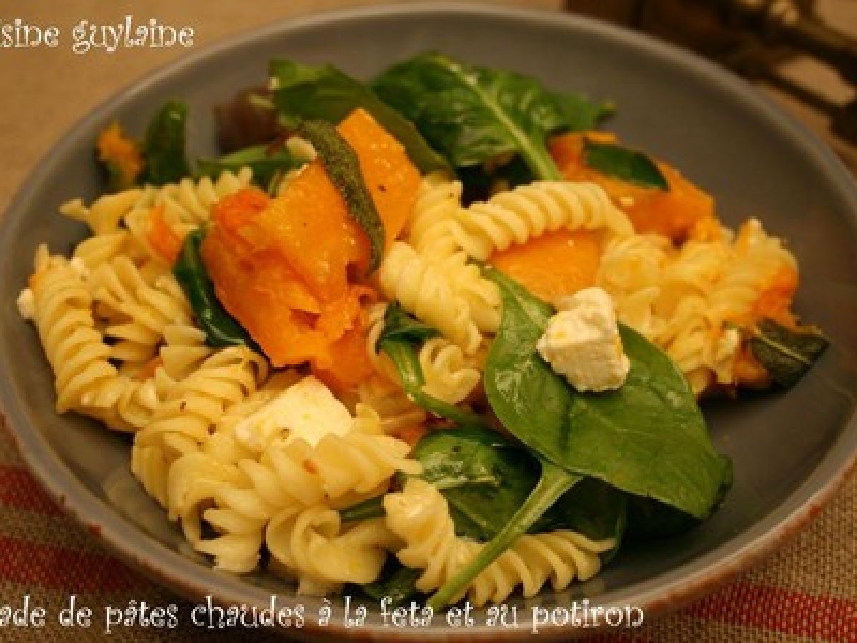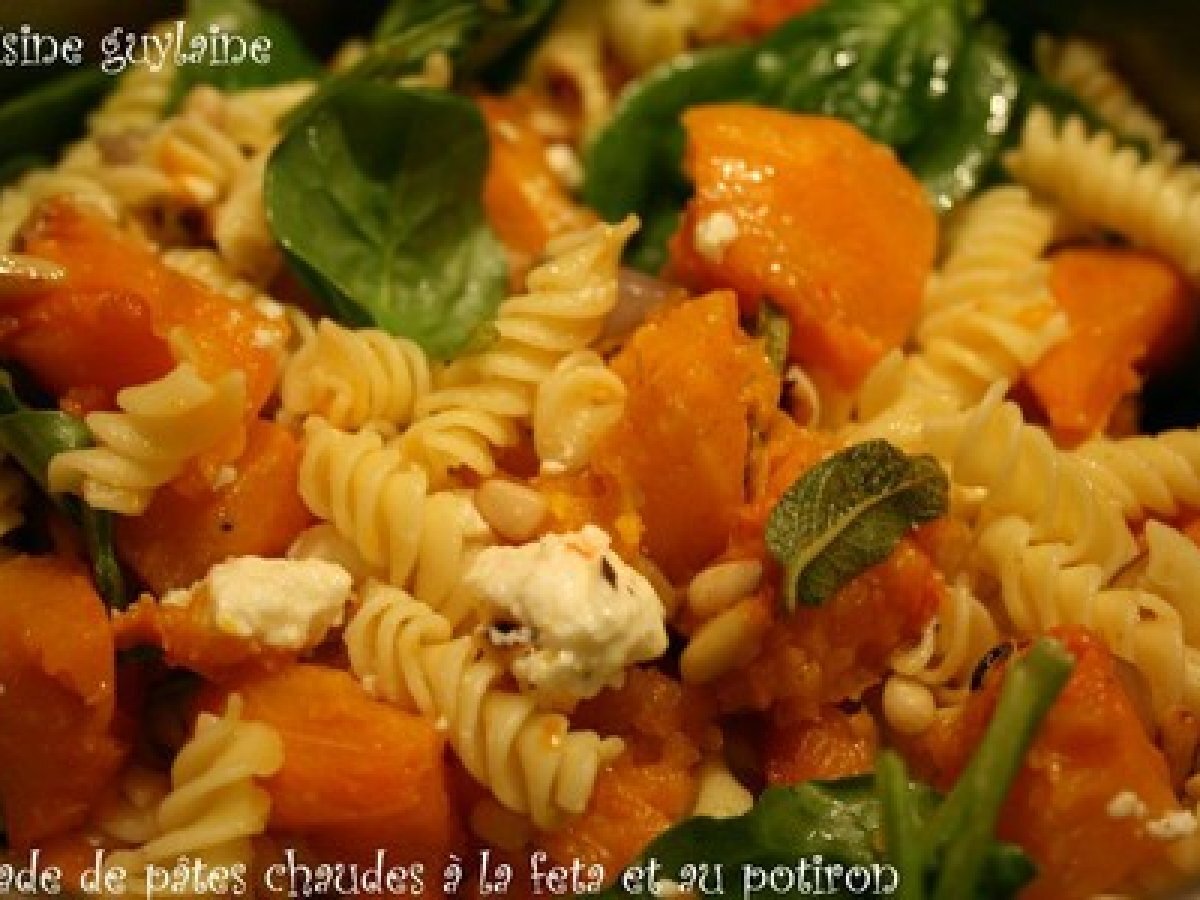Salade de pâtes chaudes à la feta et au potiron, "les légumes dans ma ville"