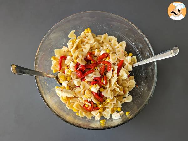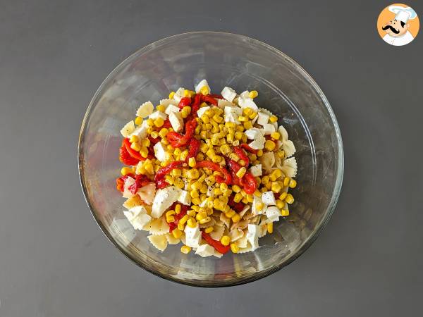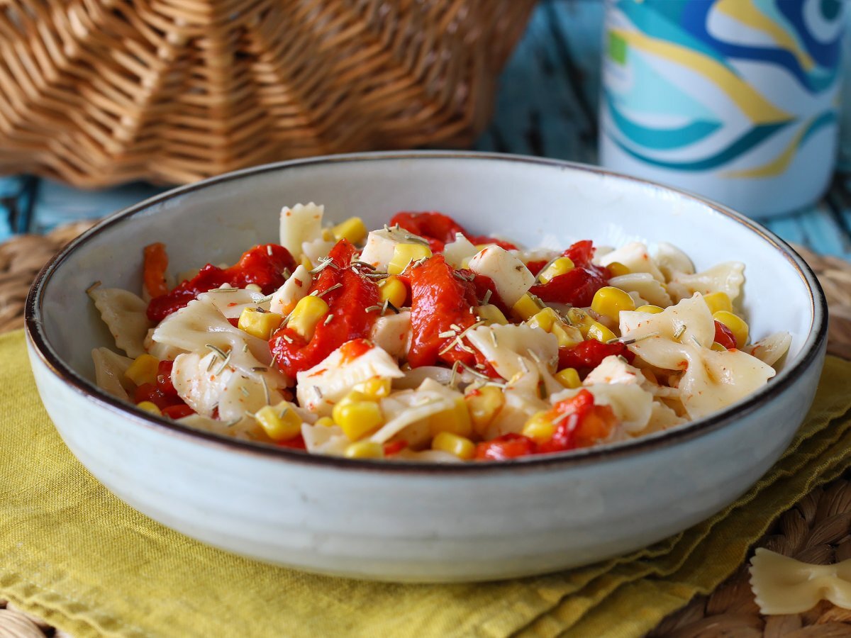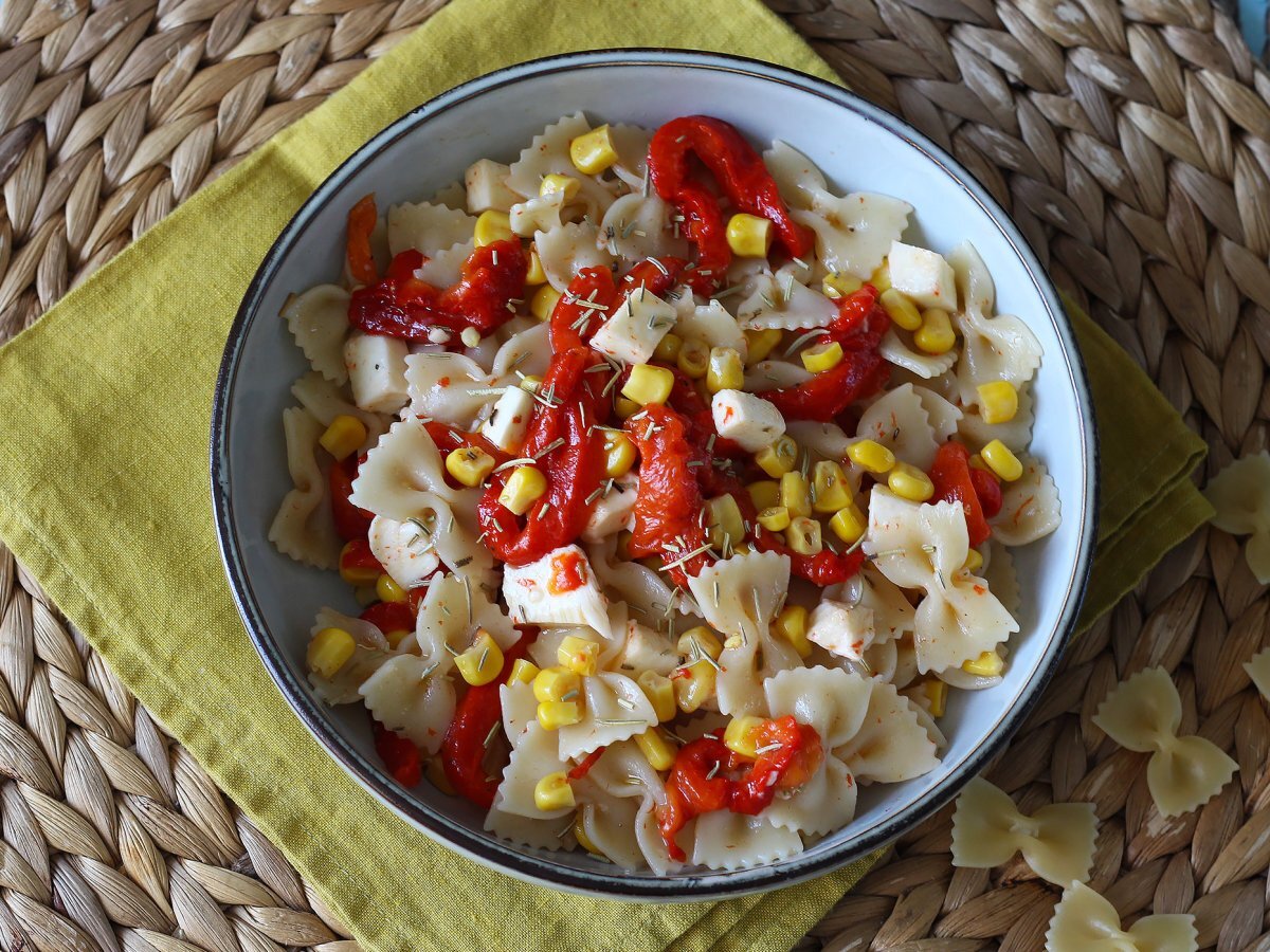 Salade de pâtes froide aux poivrons, maïs et mozzarella