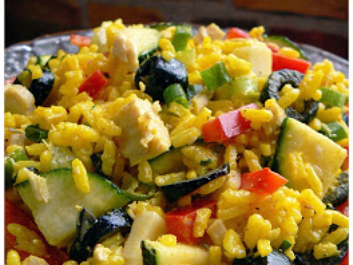 Salade de riz à l'indienne votez maintenant Platfacile25 min Envoyer cette recette à un ami Imprimer cette page Poser une question à l'auteur Publier votre photo de cette recette Ingrédients 4 1 tasse riz basmati 2 tasses eau 1 cuillère à thé chacun de curcuma et de poudre de cari 1 ½ tasse crevettes nordiques 1 branche de céleri 3 oignons verts hachés 1 poivron rouge tranché ½ courgette 7 oz Olives noires Pour la vinaigrette: coriandre ½ citron poivre huile ajout: jus de lime