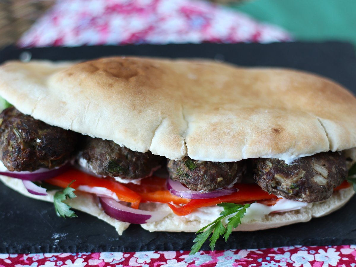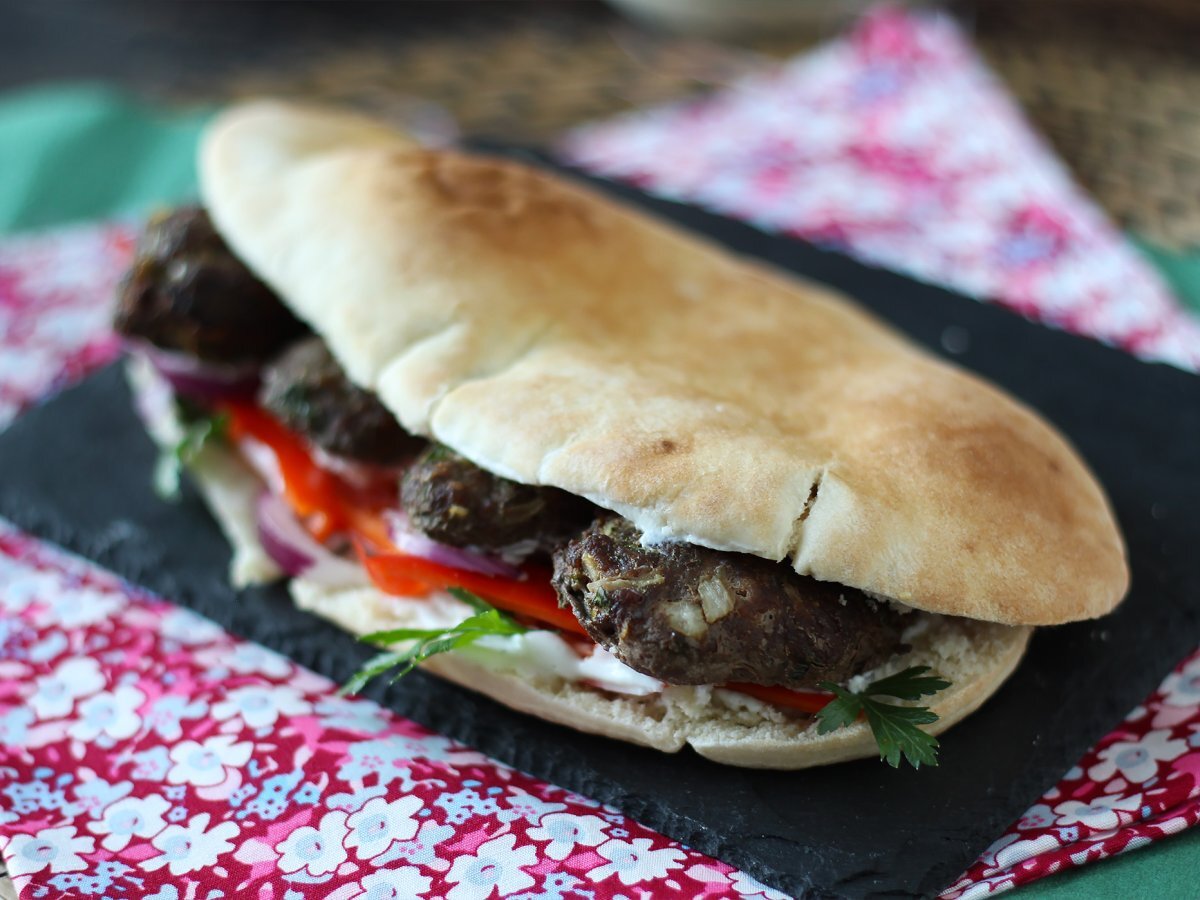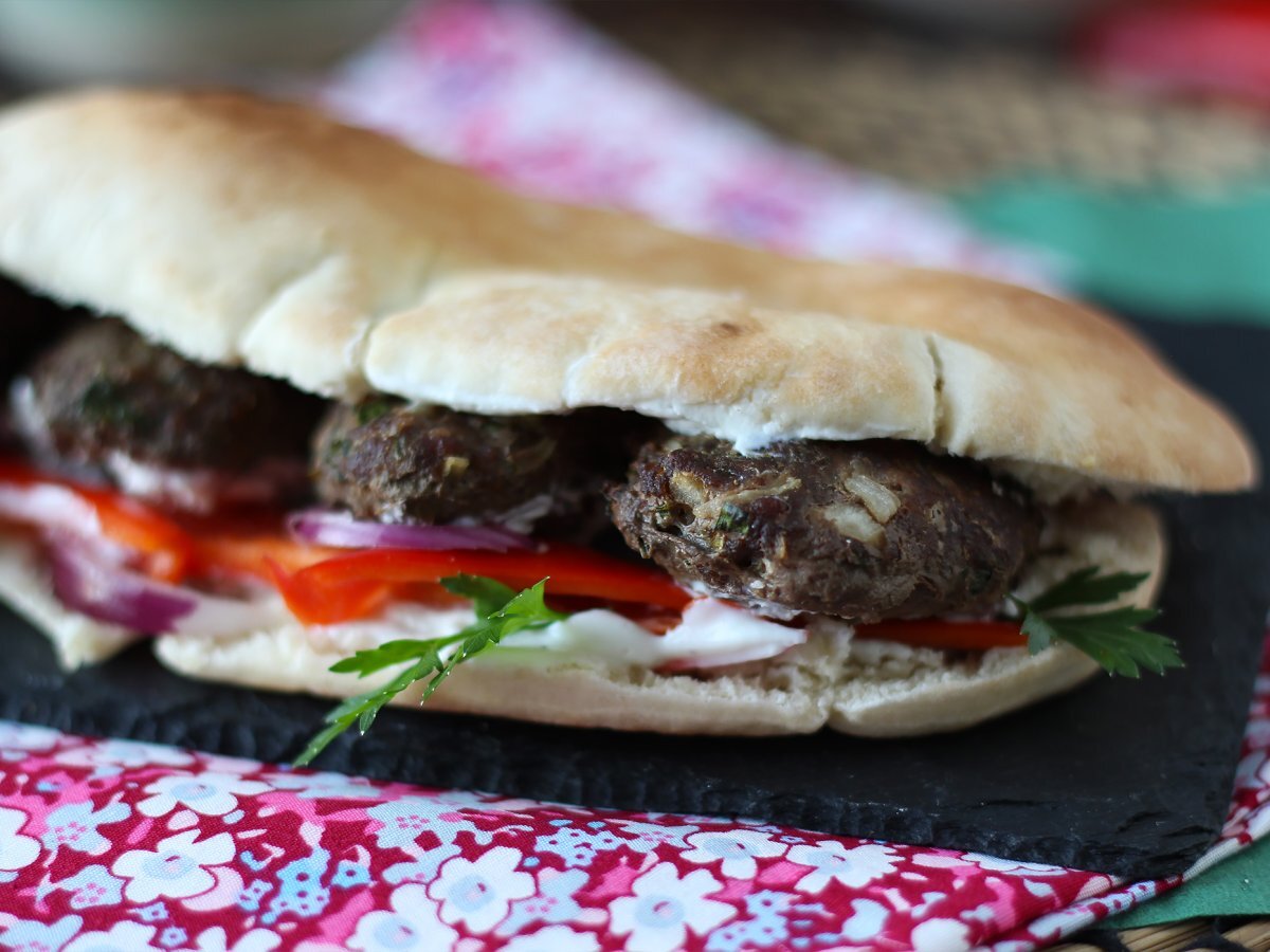 Sandwichs turques aux boulettes de köfte dans du pain à kebab