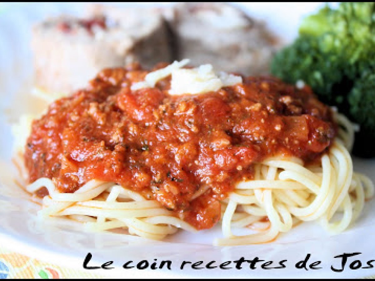 Sauce à spaghetti à la viande Platfacile45 min184 Kcal Envoyer cette recette à un ami Imprimer cette page Poser une question à l'auteur Publier votre photo de cette recette Ingrédients 4 1 gros oignon jaune coupé en cubes 1 livre de boeuf haché maigre 1 boîte de tomates entières 1 boîte de pâte de tomate 1 boîte de sauce tomate (moi une grosse) Huile d'olive Mélange d'épices: 1 cuillère à table de poudre d'ail 1 cuillère à table de sel 1 cuillère à thé de poivre noir moulu 2 gousses d'ail fraiches, pilées 2 cuillères à table de persil séché 1 cuillère à table de basilic séché 1 cuillère à thé d'origan séché 1 cuillère à thé de thym séché 2-3 feuilles de laurier entières 2 cuillère à table de cassonade Coût estimé: 6.79Euros€ (1.7€/part)