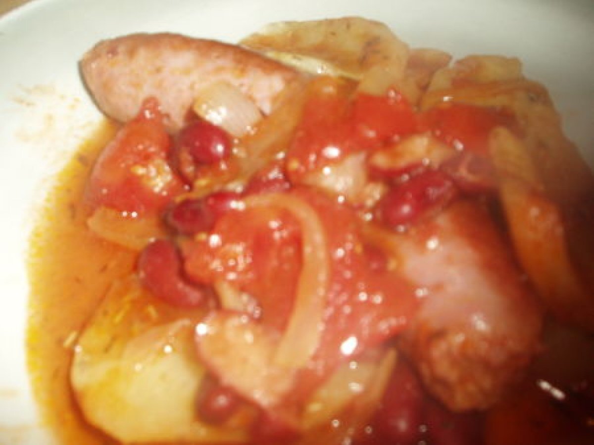 Saucisses de toulouse en gratin votez maintenant PrécédentSuivant Platfacile55 min598 Kcal Envoyer cette recette à un ami Imprimer cette page Poser une question à l'auteur Publier votre photo de cette recette Ingrédients 4 4 saucisses de Toulouse 800 g de pommes de terre à char ferme 1 grosse boîte de tomates pelées ou concassées 250 g de haricots rouges en boîte 1 cuillère à soupe de concentré de tomate 2 oignons 10 cl de bouillon de volaille thym sel Coût estimé: 7.09Euros€ (1.77€/part)