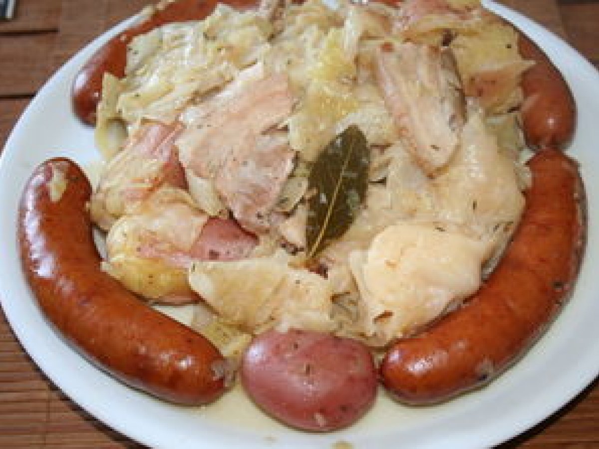 Saucisses fumées d'alsace au chou blanc Platfacile42 min1219 Kcal Envoyer cette recette à un ami Imprimer cette page Poser une question à l'auteur Publier votre photo de cette recette Ingrédients 2 4 saucisses fumées d'Alsace (Stoeffler) 1 chou blanc 1 oignon 4 tranches de poitrine de porc fraîche 4 pommes de terre 250 ml de vin blanc baies de genièvre sel poivre en grain et au moulin Coût estimé: 8.4Euros€ (4.2€/part)