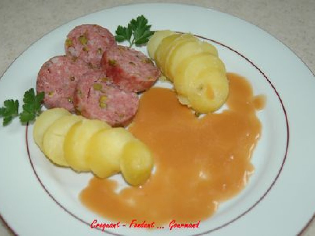Saucisson de lyon pistaché au porto votez maintenant Platfacile55 min Envoyer cette recette à un ami Imprimer cette page Poser une question à l'auteur Publier votre photo de cette recette Ingrédients 4 1 saucisson de Lyon pistaché de 800 g 1 kg de pommes de terre 25 g de beurre 20 g de farine 25 g de Porto 250 g d'eau 1 Kub 1 cuillère à caféde concentré de tomate sel poivre du moulin