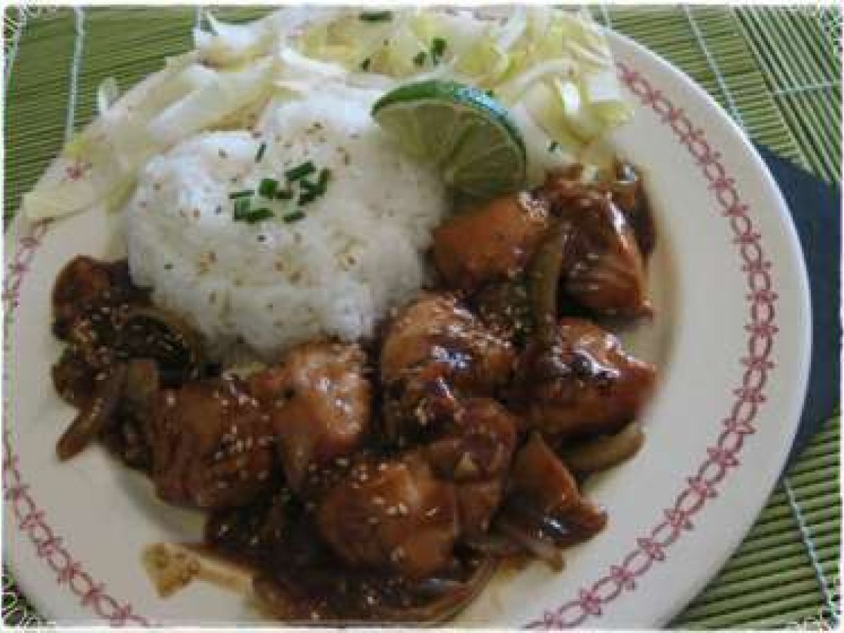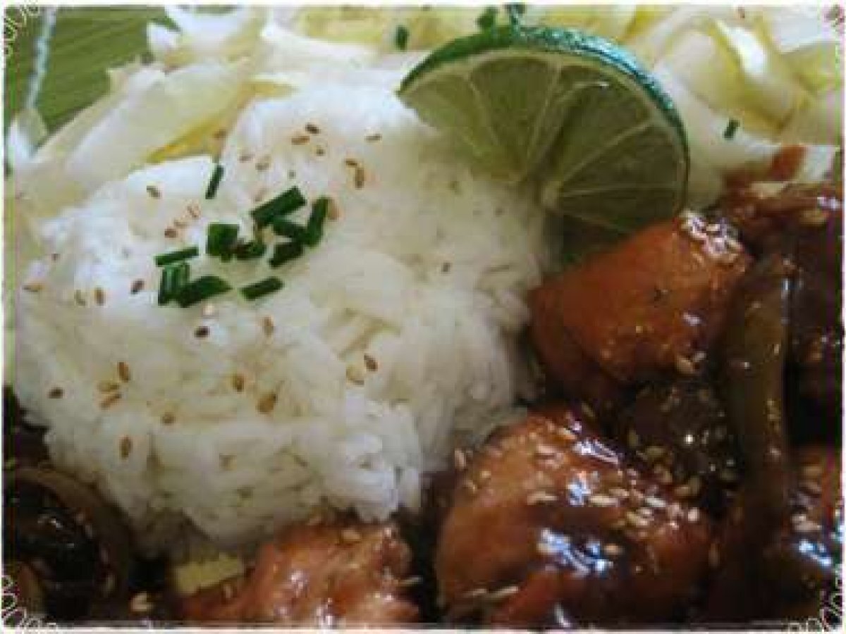 Saumon à la sauce yakitori et au miel PrécédentSuivant Platmoyen30 min Envoyer cette recette à un ami Imprimer cette page Poser une question à l'auteur Publier votre photo de cette recette Ingrédients 2 2 pavés de saumon (sans la peau) Sauce YAKITORI (rayon japonais) 1 oignon 1 petit morceau de gingembre frais 1 c.c rase de miel 1 citron vert graine de sésame et ciboulette pour le décor baie de shi shuan, sel ,poivre noir