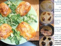Refermer la pâte en ramenant les deux côtés l'un sur l'autre par dessus les épinards puis plier et refermer les deux autres bords du haut et du bas.
