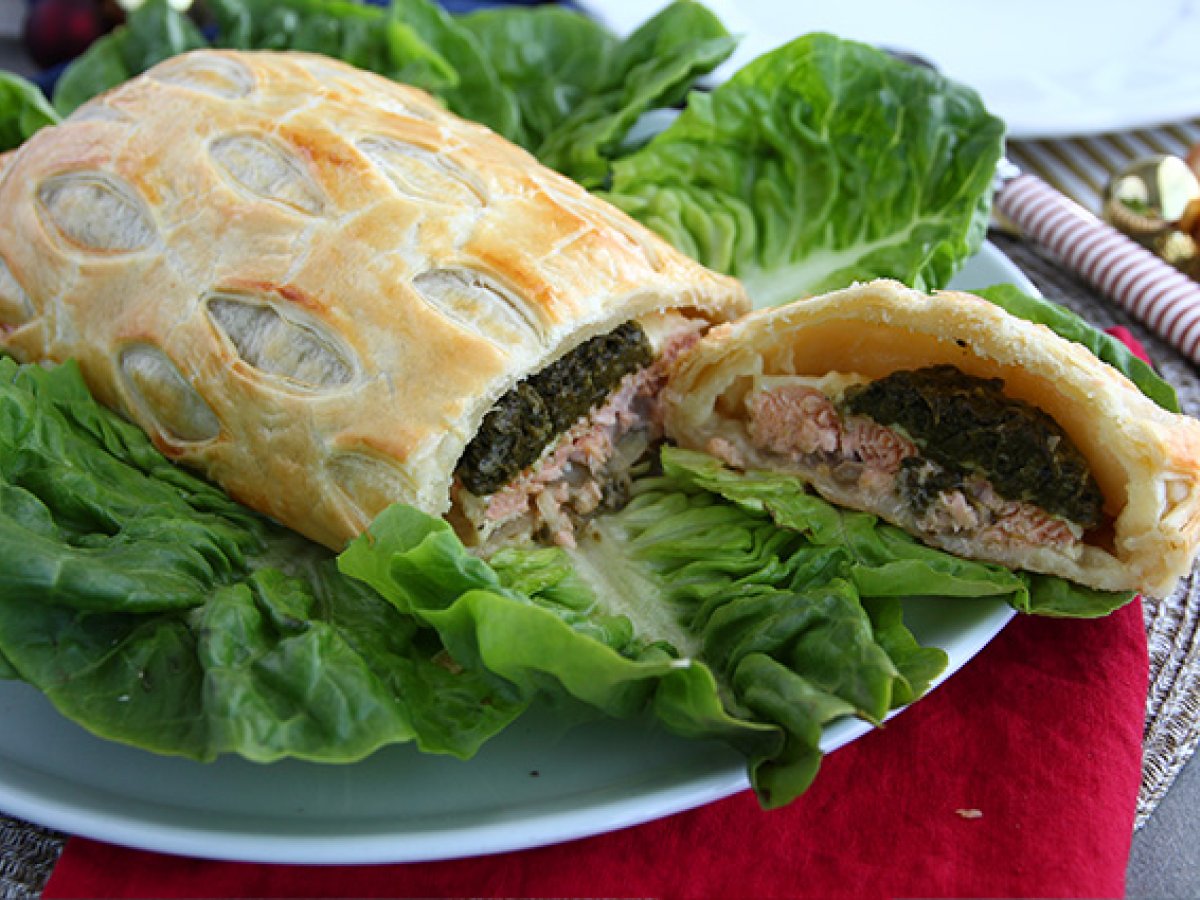 Et voilà, votre saumon en croûte aux épinards est prêt ! Vous pouvez l'accompagner de salade.