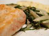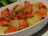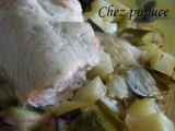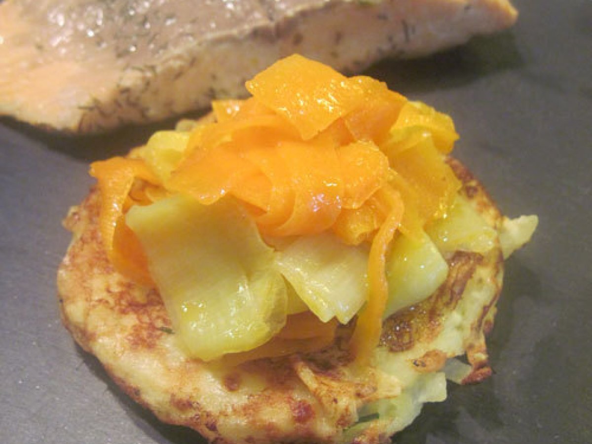 Saumon et sa fondue de poireaux et carottes sur galette de pommes de terre