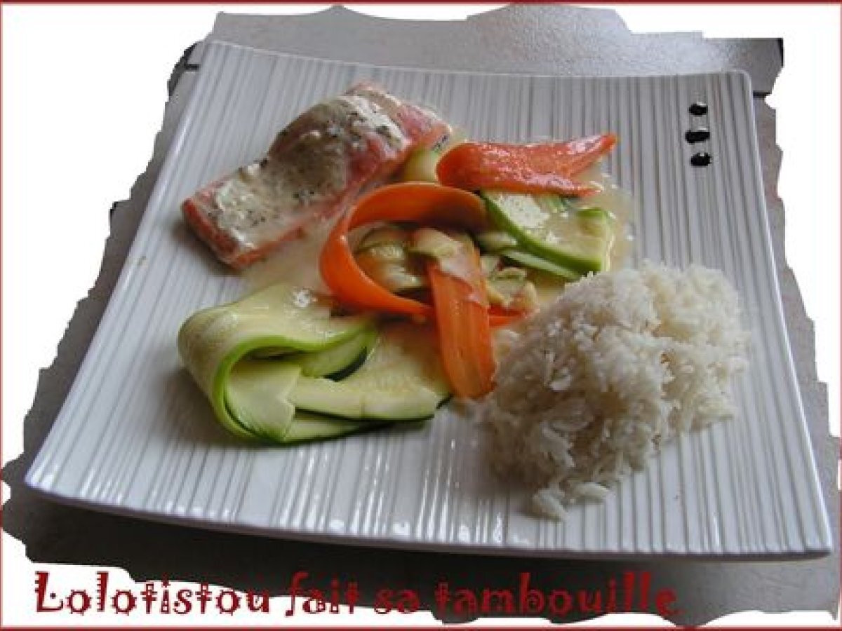 Saumon et tagliatelles de légumes votez maintenant Platmoyen35 min427 Kcal Envoyer cette recette à un ami Imprimer cette page Poser une question à l'auteur Publier votre photo de cette recette Ingrédients 4 2 courgettes 2 carottes 4 pavés de saumon 200 gr de riz basmati 2 Cuillères à Café Boursin 1 cube Or 10 g de Maïzena 50 g de Saint Morêt Sel et poivre