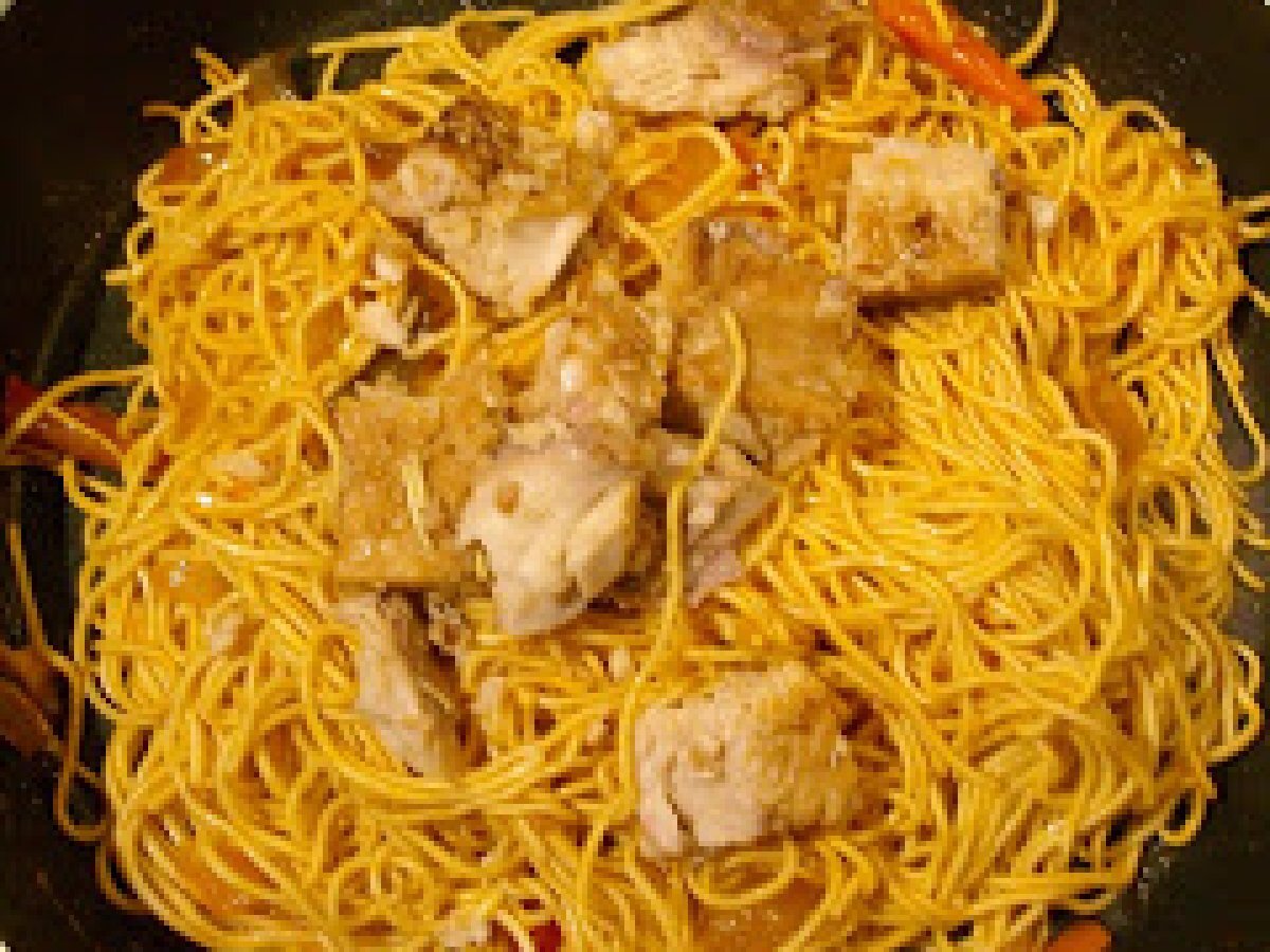 Saumon mariné aux nouilles aigre douce