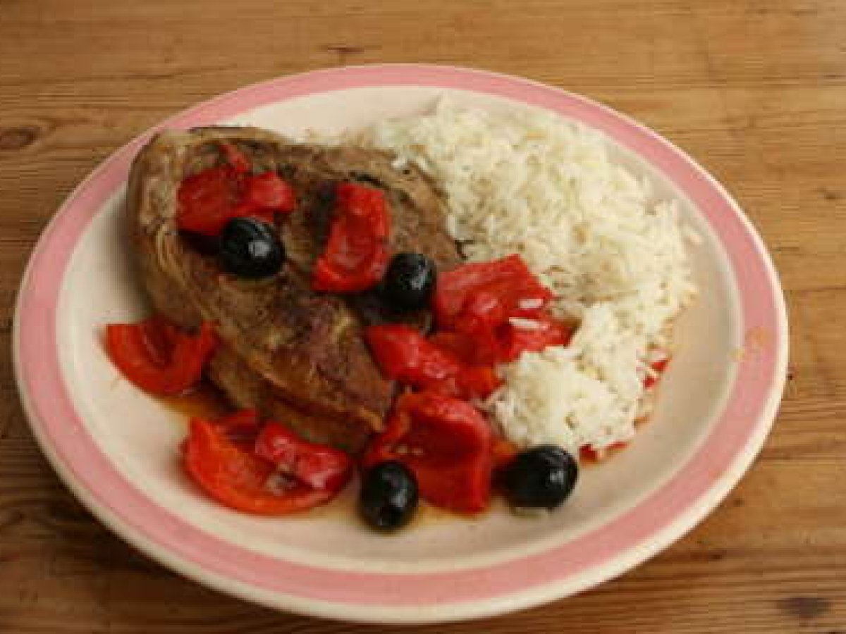 Sauté d'agneau aux poivrons et aux olives Platmoyen1 h 15 m Envoyer cette recette à un ami Imprimer cette page Poser une question à l'auteur Publier votre photo de cette recette Ingrédients 6 1kg dépaule dagneau désossée, détaillée en cubes 4 poivrons rouges 3 gousses dail 1 oignon 1 cuil. A soupe dhuile dolive vierge extra 10g de beurre 15cl de vin blanc sec 4 feuilles de laurier 12 olives noires dénoyautées sel et poivre