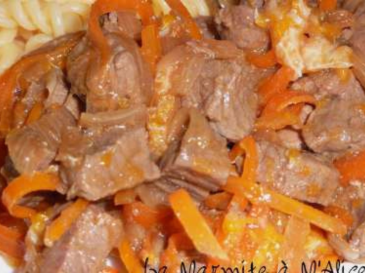 Sauté de boeuf aux clémentines et cumin Platfacile35 min310 Kcal Envoyer cette recette à un ami Imprimer cette page Poser une question à l'auteur Publier votre photo de cette recette Ingrédients 4 500 g de filet de boeuf 1 gros oignon 1 grosse échalote 6 clémentines 1 carotte 4 cuillères à café de beurre à 40% de matière grasse 1 cuillère à café de cumin en poudre 2 cuillères à soupe de miel 2 cuillères à soupe de sauce soja 1 cuillère a café de gingembre en poudre 20 cl d'eau 1 tablette de bouillon de boeuf Sel et poivre Coût estimé: 9.59Euros€ (2.4€/part)