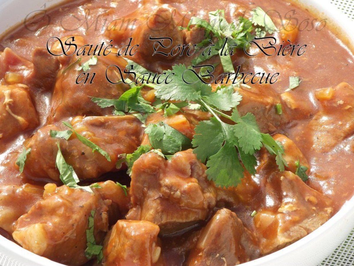 Saute de porc a la biere en sauce barbecue Platfacile1 h 45 m700 Kcal Envoyer cette recette à un ami Imprimer cette page Poser une question à l'auteur Publier votre photo de cette recette Ingrédients 6 1,200 kg de sauté de porc, 20 cl de bière, 20 cl de sauce barbecue (prêt à l'emploi) 1 càs de sauce chili, 1 càs de sauce Worcestershire, 1 càs de miel, 2 oignons, 2 gousses d'ail, hachées, 1 càs de fécule de maïs, coriandre fraichement ciselée, sel et poivre du moulin