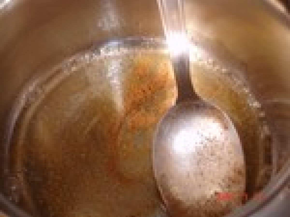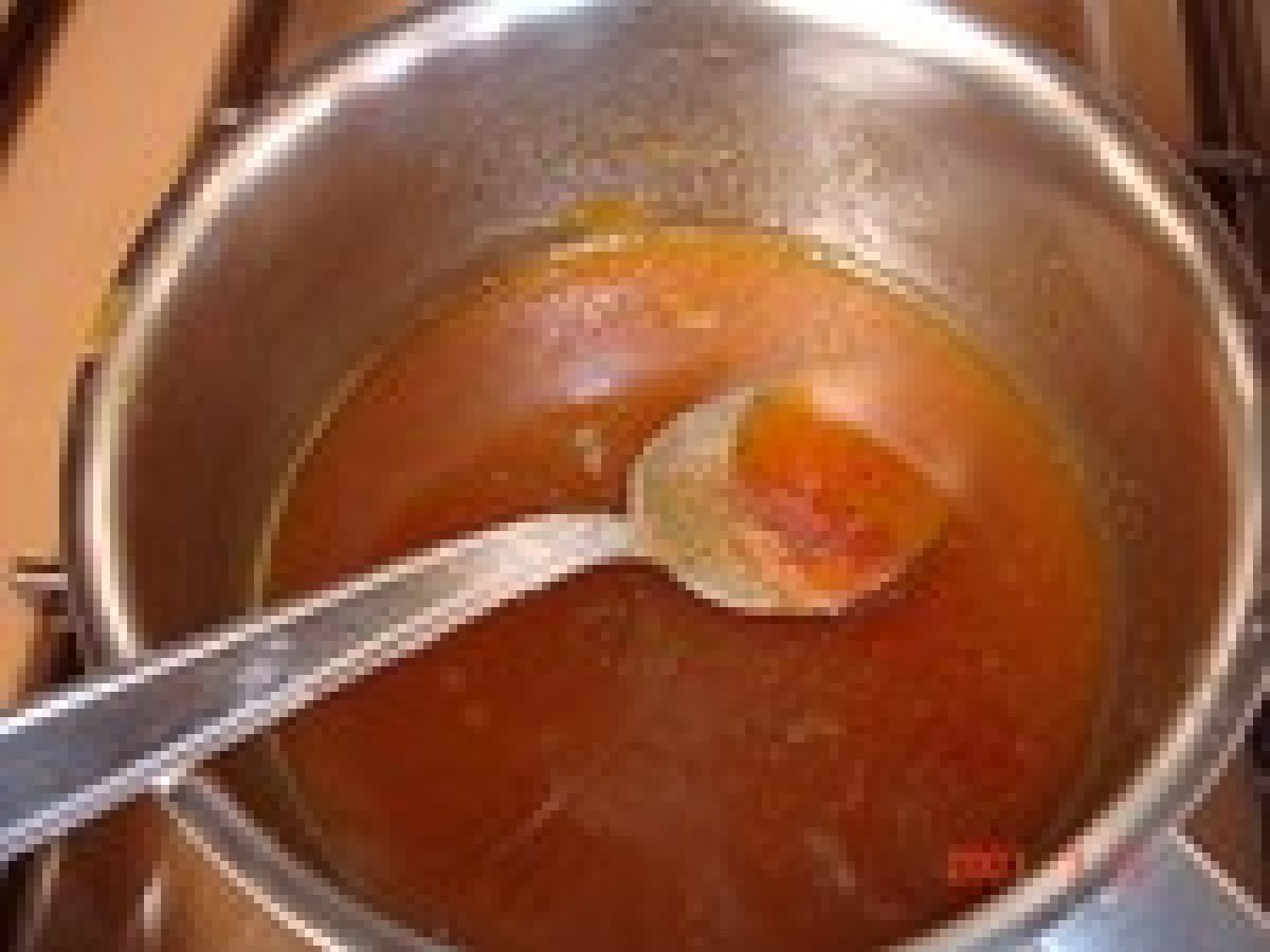 Mettre le miel dans un poêlon, y verser le vinaigre, le jus d'orange et les épices - Laisser cuire 3 minutes puis ajouter la demi tranche de pain d'épice, et bien mélanger pour la délayer complètement
