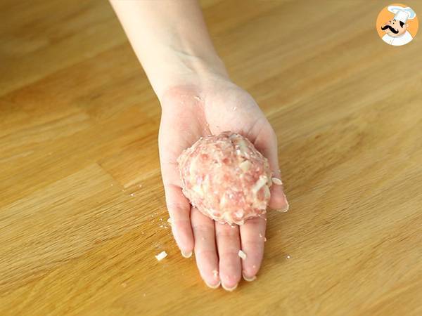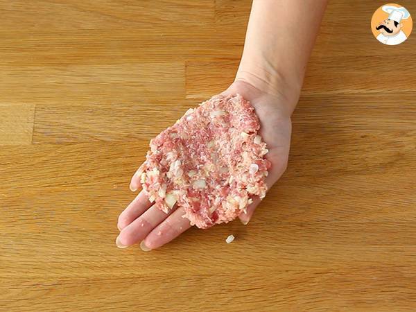Prendre 1 quart de la préparation de viande, et l'aplatir dans la main.
