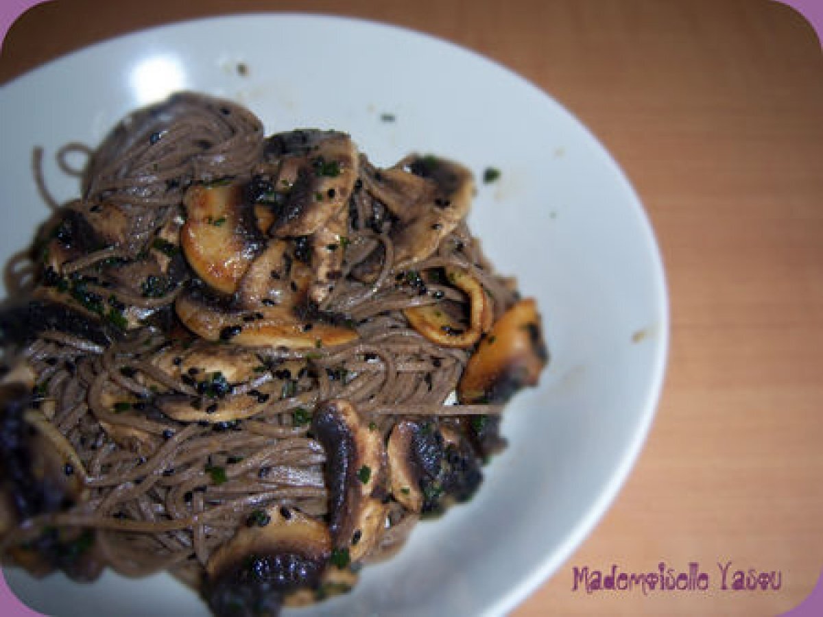 Soba aux champignons et sauce citron-gingembre Platfacile20 min Envoyer cette recette à un ami Imprimer cette page Poser une question à l'auteur Publier votre photo de cette recette Ingrédients 3 1 paquet de nouilles soba 4 gros champignons de paris 1 1/2 cuillère à soupe de beurre 1 cuillère à soupe de coriandre hachée 1 cuillère à soupe de graines de sésame Pour la sauce: 3/4 cuillères à café de piment de cayenne le zeste d'un citron 1 cuillère à soupe de jus de citron 1 morceau de gingembre de 2cm pelé et râpé 1/4 cup de vinaigre de riz 1/3 cup de sauce soja 1 cuillère à soupe de miel 1 cuillère à soupe d'huile de sésame 3 cuillères à soupe d'huile d'olive