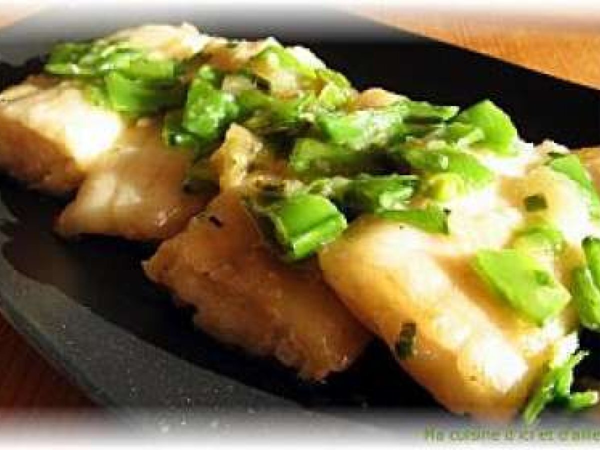 Sole marinée aux pois gourmands Platmoyen40 min276 Kcal Envoyer cette recette à un ami Imprimer cette page Poser une question à l'auteur Publier votre photo de cette recette Ingrédients 4 4 filets de sole 50 gr de pois gourmands 1 échalote 1 cuillère à café de gingembre moulu 1/2 botte de ciboulette 1 cuillère à soupe de vin de riz 2 cuillères à soupe d'huile de sésame 3 cuillères à soupe d'huile d'arachide sel et poivre