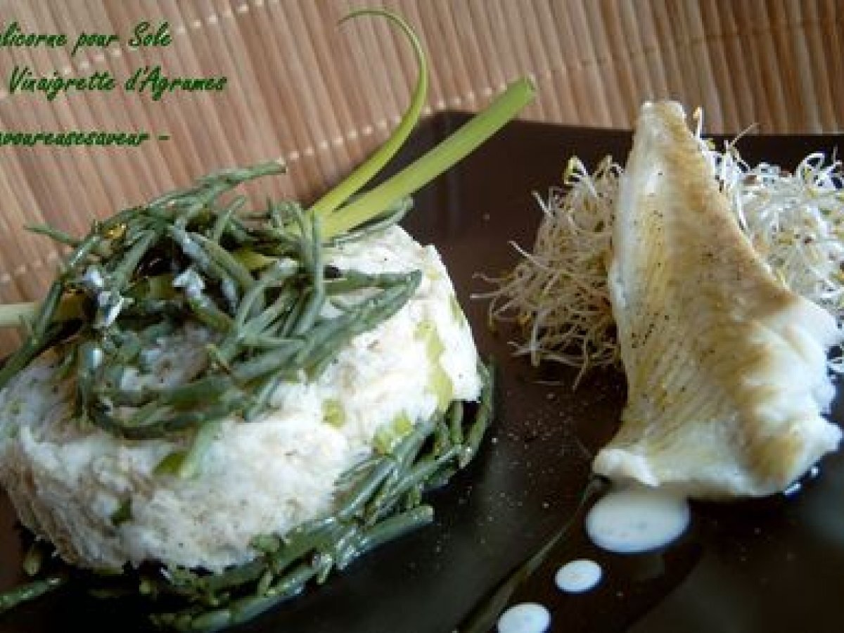 Solette en vinaigrette d'agrume et sa purée aux oignons et salicorne