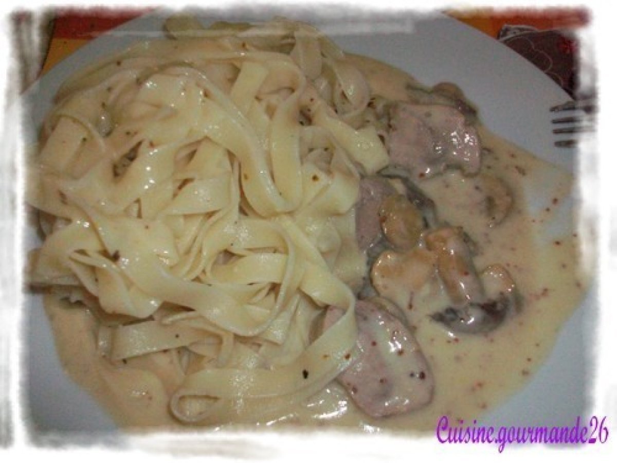 Je vous propose un bon petit plat en sauce. Il est bien relevé grâce à la moutarde et s'accocie très bien avec des tagliatelles ou avec du riz.