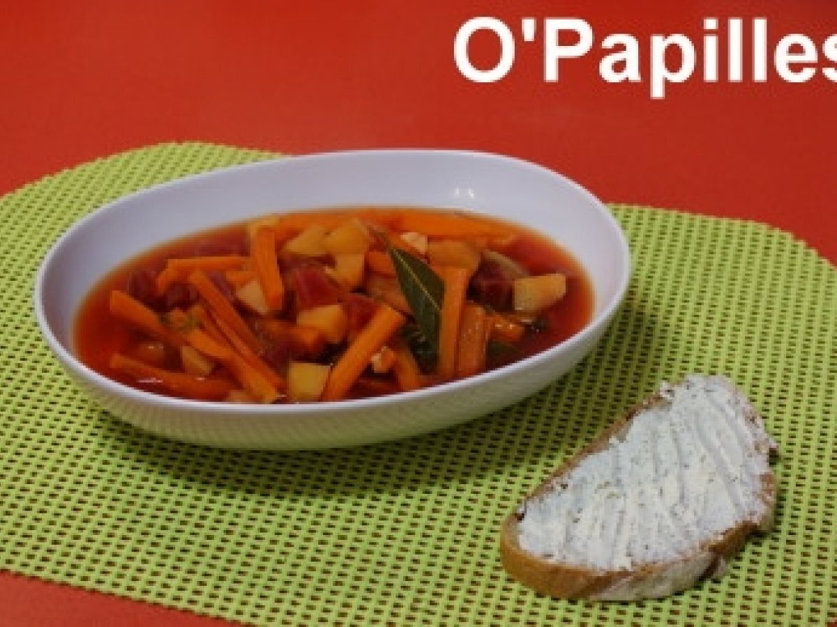Soupe à la betterave, carottes, pommes de terre Platfacile1 h 15 m257 Kcal Envoyer cette recette à un ami Imprimer cette page Poser une question à l'auteur Publier votre photo de cette recette Ingrédients 4 400g de betteraves crues et les feuilles 400g de carottes et les fanes 400g de pommes de terre 1 oignon 2 gousses d'ail 4 feuilles de laurier 2 cuillères à soupe d'huile de tournesol sel et poivre Coût estimé: 7.9Euros€ (1.98€/part)