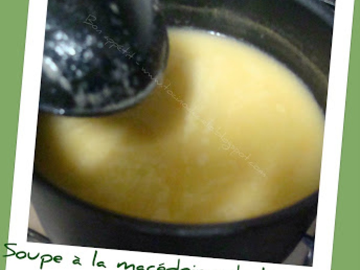 Soupe à la macédoine de légumes votez maintenant Platfacile25 min Envoyer cette recette à un ami Imprimer cette page Poser une question à l'auteur Publier votre photo de cette recette Ingrédients 2 1/2 sachet de légumes surgelés pour salade russe (ou alors un mélange de carottes/pommes de terre/petits pois/haricots verts pour faire 400 g environ) 1/2 oignon 1 tablette de bouillon cube de volaille 1,5 litre d'eau 1 cuillère à soupe de fromage philadelphia (ou St Môret) -facultatif Sel poivre