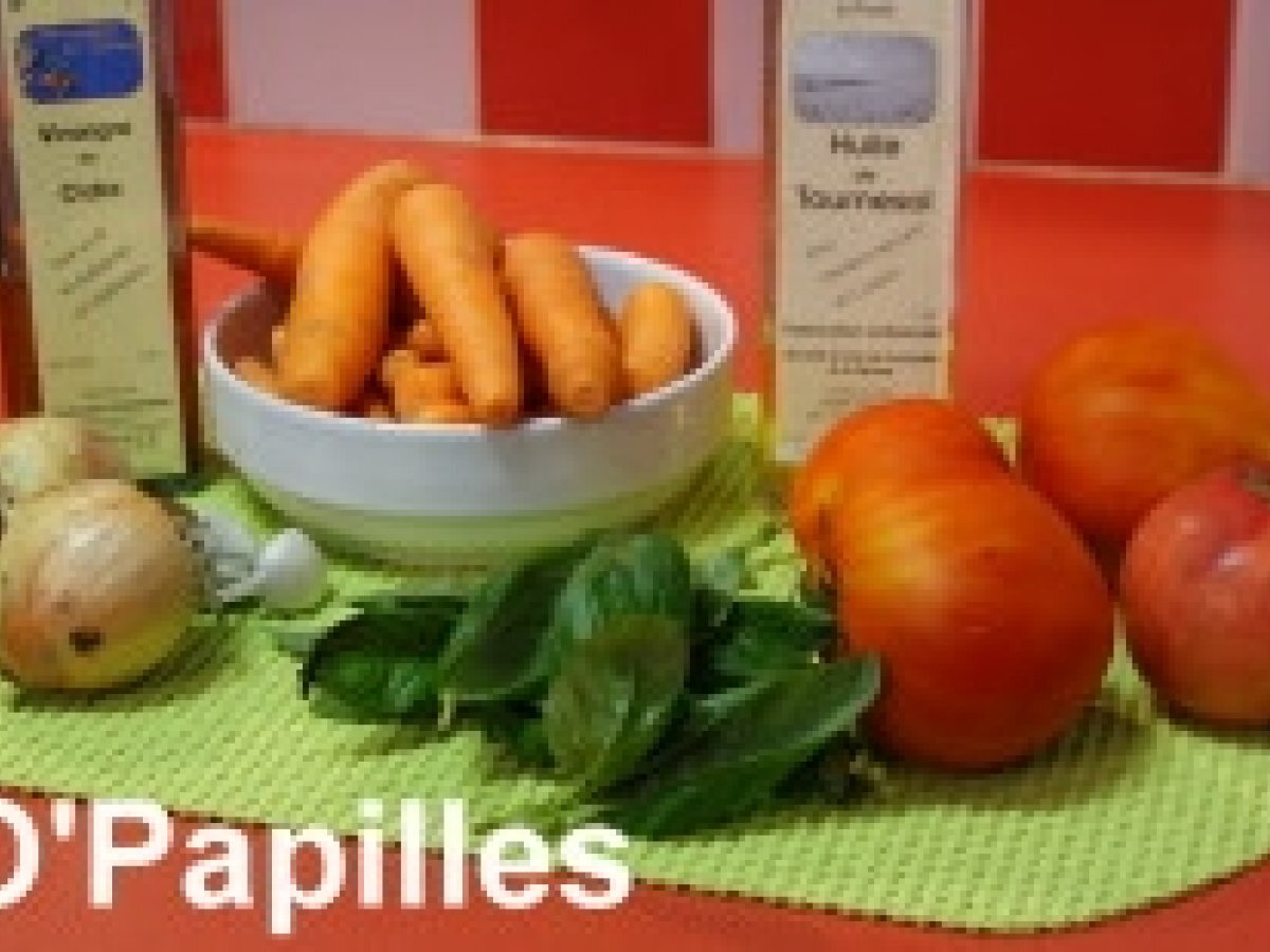 Soupe aux carottes, tomates et basilic PrécédentSuivant Platfacile1 h 10 m109 Kcal Envoyer cette recette à un ami Imprimer cette page Poser une question à l'auteur Publier votre photo de cette recette Ingrédients 6 1 kg de tomates 800 g de carottes quelques feuilles de basilic 2 oignons 3 gousses d'ail 1 cuillère à soupe d'huile de tournesol 1 cuillère à soupe de vinaigre de cidre sel poivre Coût estimé: 4.46Euros€ (0.74€/part)