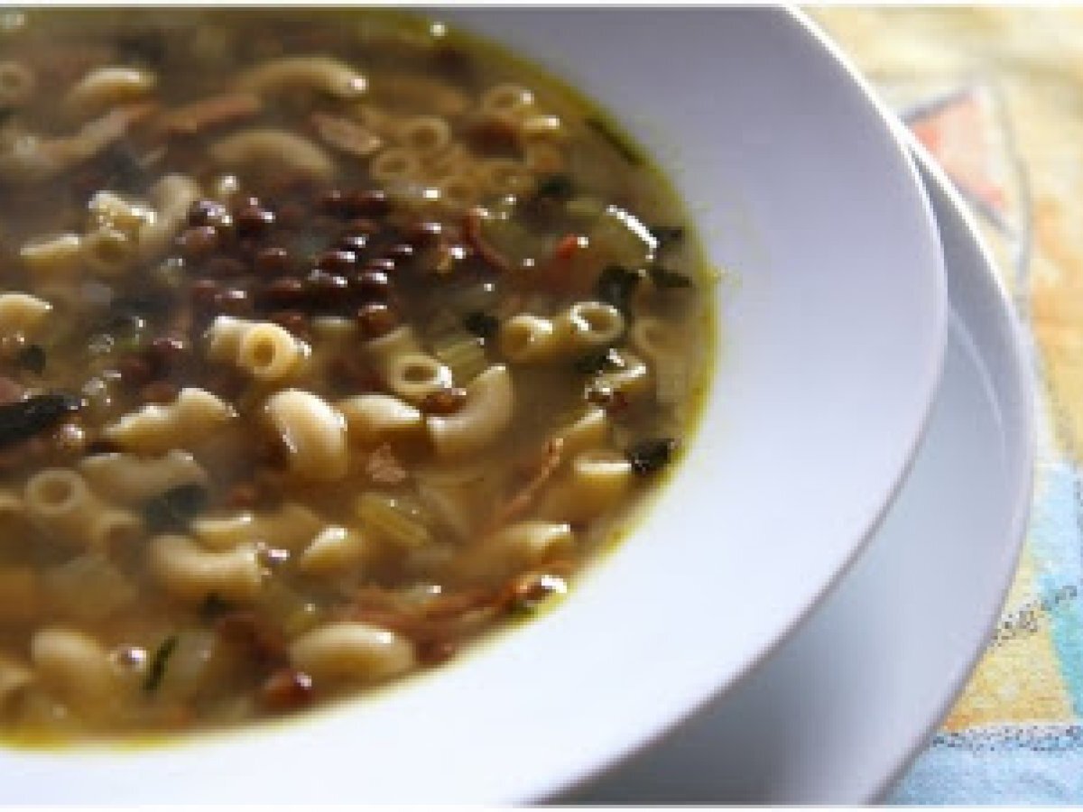 Soupe aux lentilles à l'italienne Platfacile25 min261 Kcal Envoyer cette recette à un ami Imprimer cette page Poser une question à l'auteur Publier votre photo de cette recette Ingrédients 4 4 fines tranches de lard fumé (bacon), coupées en lanières 1 oignon finement haché 2 gousses d'ail écrasées 2 branches de céleri coupées en petits dés 50 g de petites coquillettes (ou autres pâtes tubulaires de petit format) 400 g de lentilles brunes ou vertes de conserve, soigneusement rincées et égouttées 1,2 l de bouillon de boeuf ou de légumes chaud 2 cuillères à soupe de menthe fraîche ciselée sel poivre du moulin Coût estimé: 2.29Euros€ (0.57€/part)