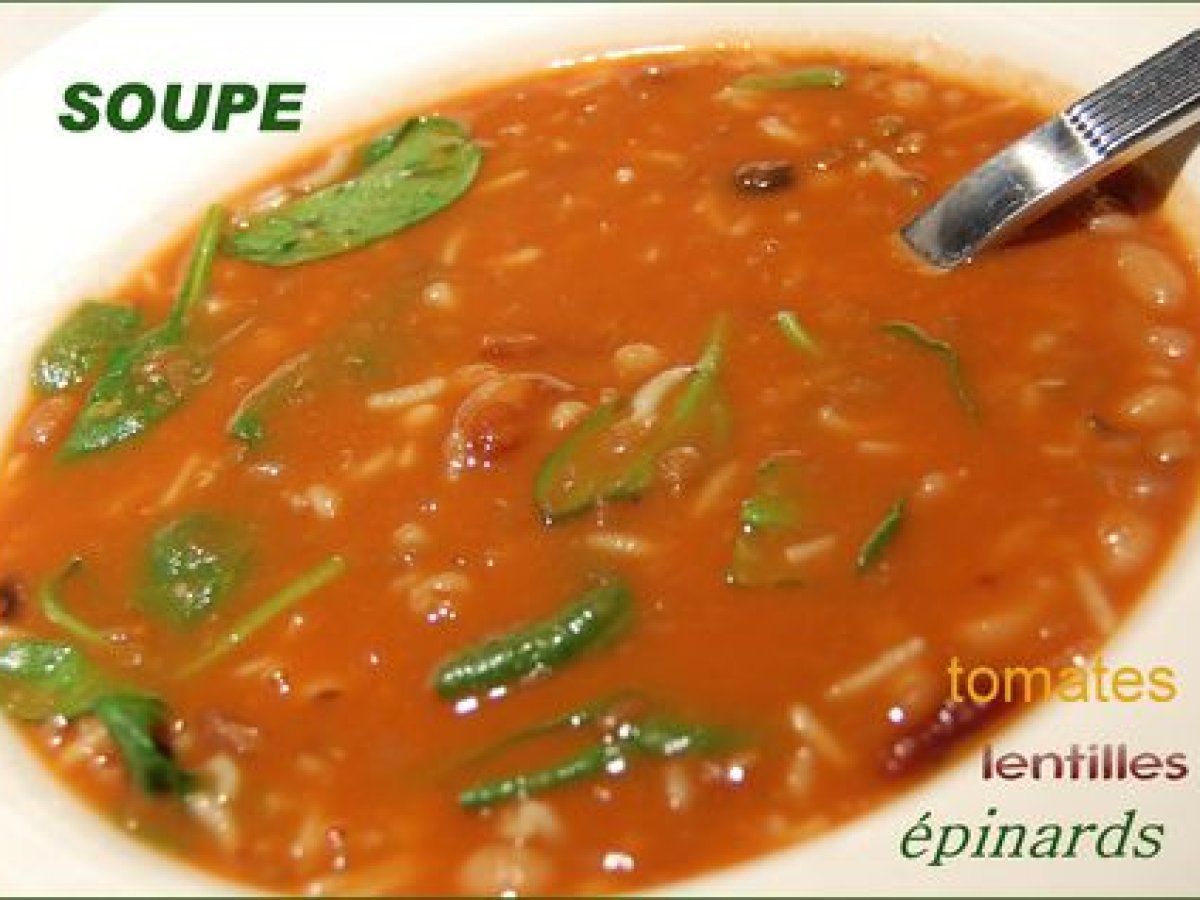 Soupe aux lentilles et aux épinards, un peu comme en grèce Platfacile32 min Envoyer cette recette à un ami Imprimer cette page Poser une question à l'auteur Publier votre photo de cette recette Ingrédients 6 1 oignon moyen, haché 4 tasses d'eau 1 tasses de lentilles mélangées bien rincées sel et poivre 1 tasse de riz basmati déjà cuit feuilles de jeunes épinards jus de tomate huile d'olive au service