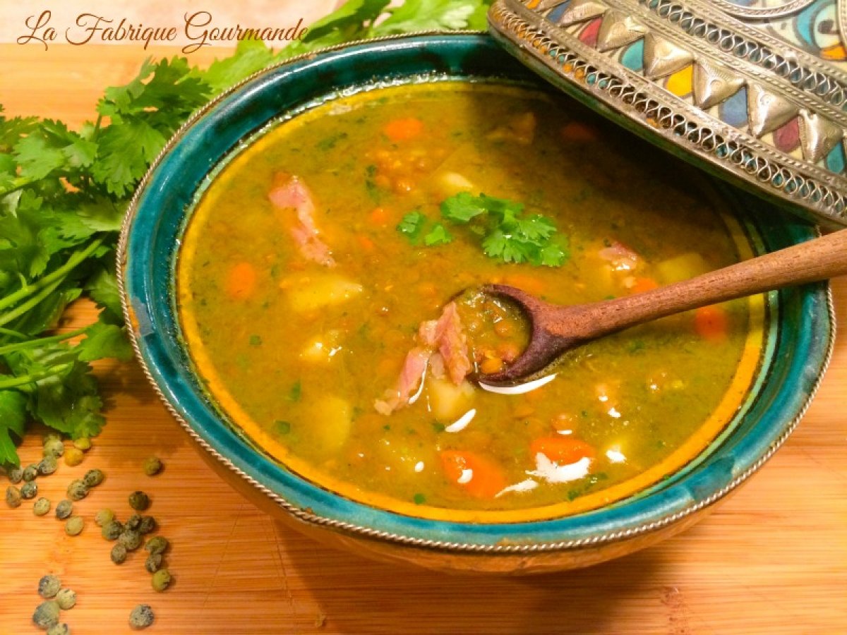 Quoi de mieux qu'une bonne soupe qui tienne au corps pour se réchauffer ? Soupe de lentilles parfumée au cumin, et à la coriandre ,savoureuse ! Elle vous apportera ce qu'il faut en vitamines et minéraux. Recette simple et rustique qui peut devenir un plat complet.