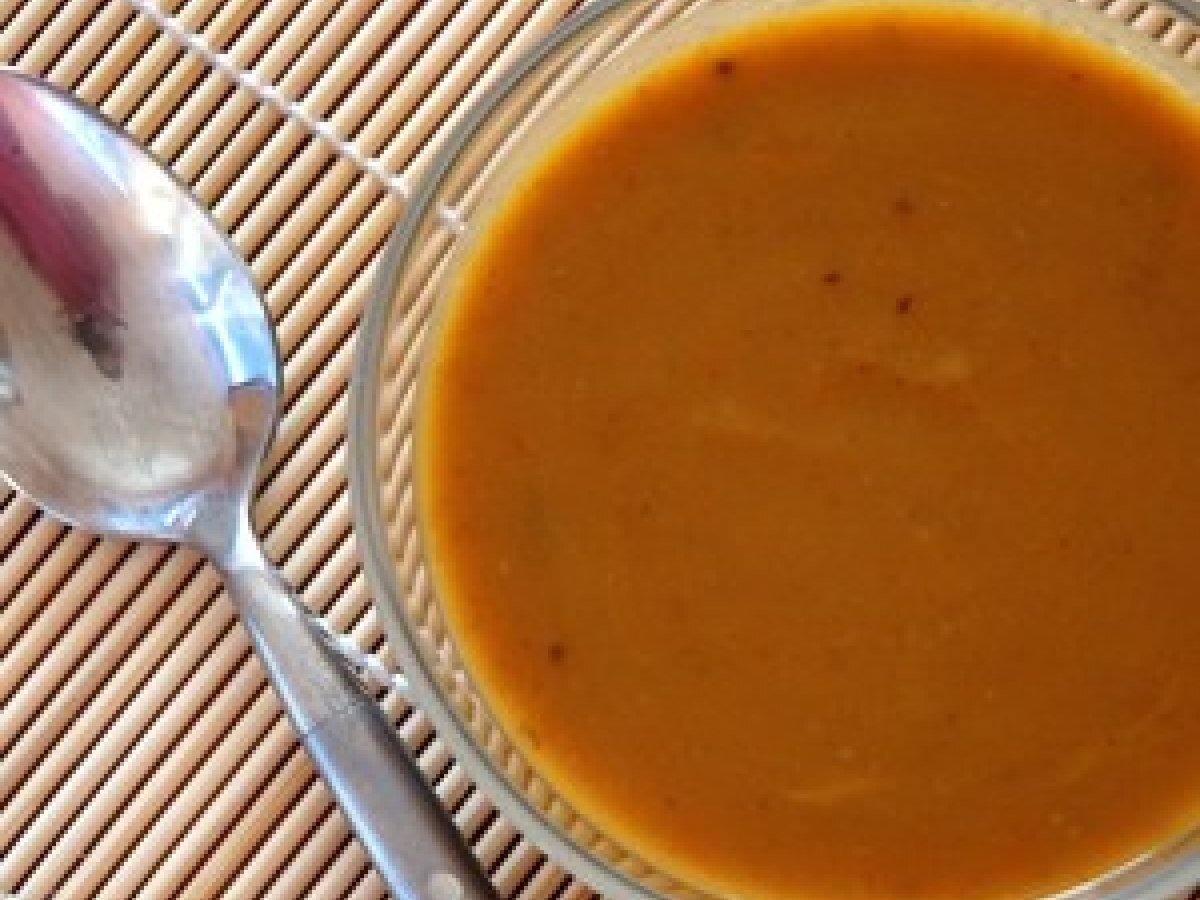 Soupe carotte-châtaigne au lait de riz vanillé, sans blé, sans lait