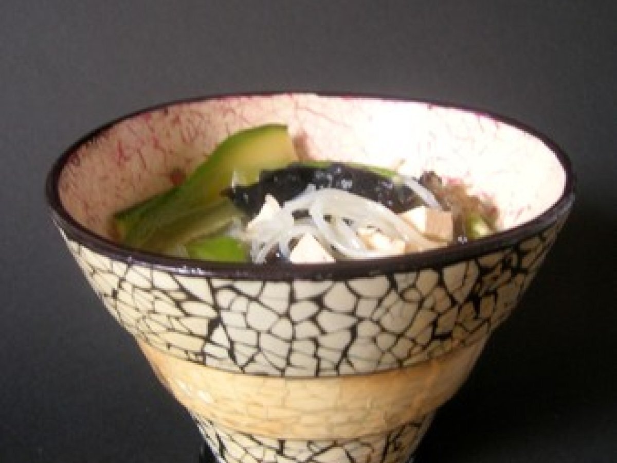 Soupe chinoise aux vermicelles et champignons noirs PrécédentSuivant Platfacile30 min410 Kcal Envoyer cette recette à un ami Imprimer cette page Poser une question à l'auteur Publier votre photo de cette recette Une soupe de réconfort au porté de tous! Ingrédients 2 2 courgettes lavées mais non épluchées 1,5 l d'eau, un cube de bouillon de volaille 150 g de fèves surgelées 15 g de champignons noirs séchés 10 g de vinaigre de riz 15 g de sauce soja 125 g de tofu taillé en cubes sel poivre 130 g de vermicelles chinois