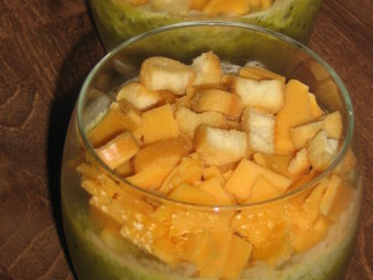 Soupe de courgettes froide aux perles du japon votez maintenant Platfacile22 min729 Kcal Envoyer cette recette à un ami Imprimer cette page Poser une question à l'auteur Publier votre photo de cette recette Ingrédients 2 2 courgettes 500 ml de bouillon 2 cuillères à soupe de perle du japon huile d'olive 10 cl de crème liquide légère cheddar croûtons