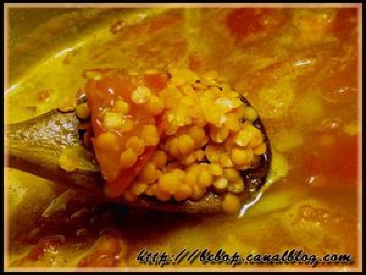 Soupe de lentilles corail et tomates au curry
