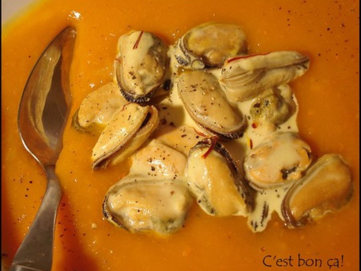 Soupe de potimarron aux moules et au safran