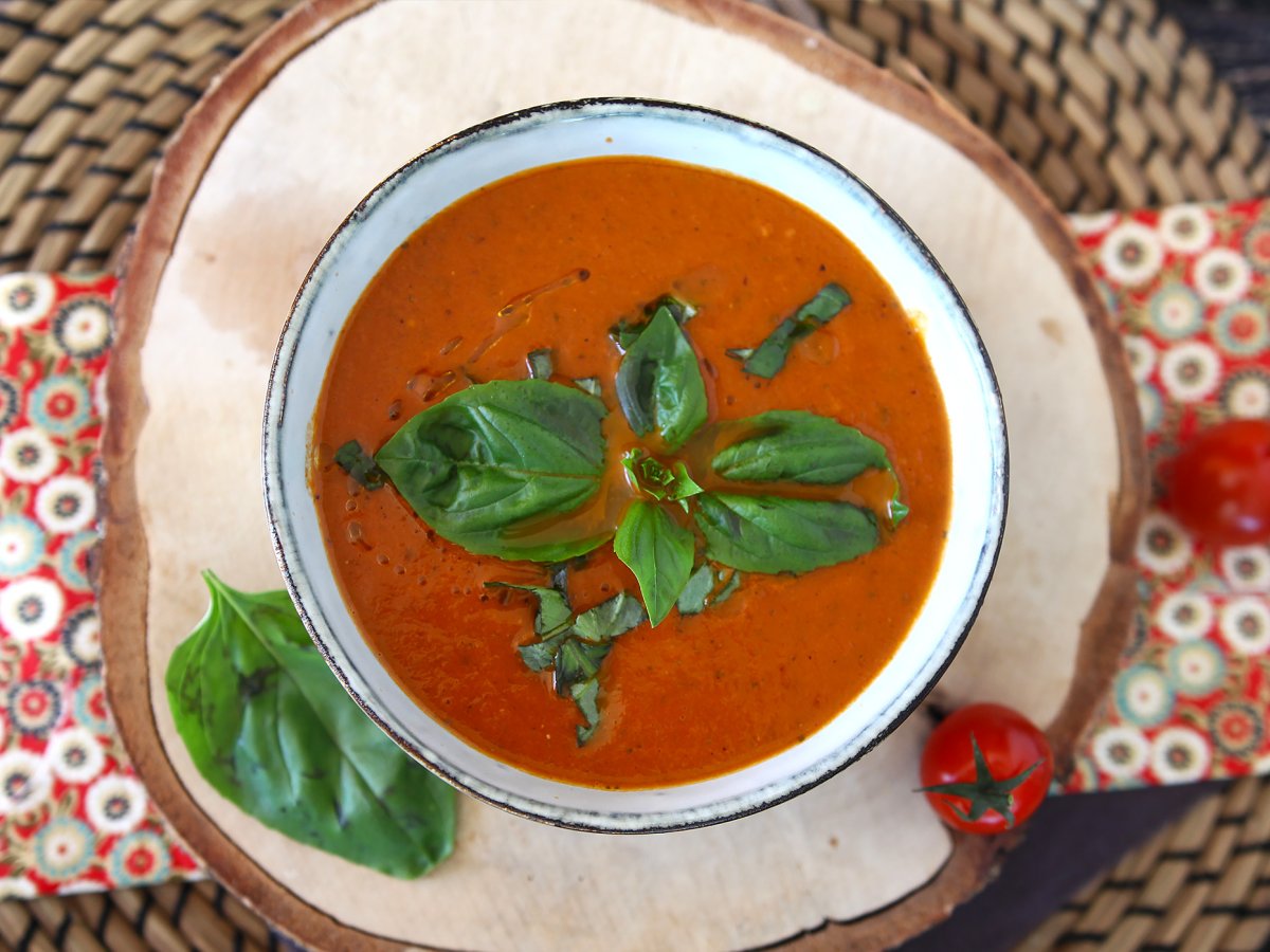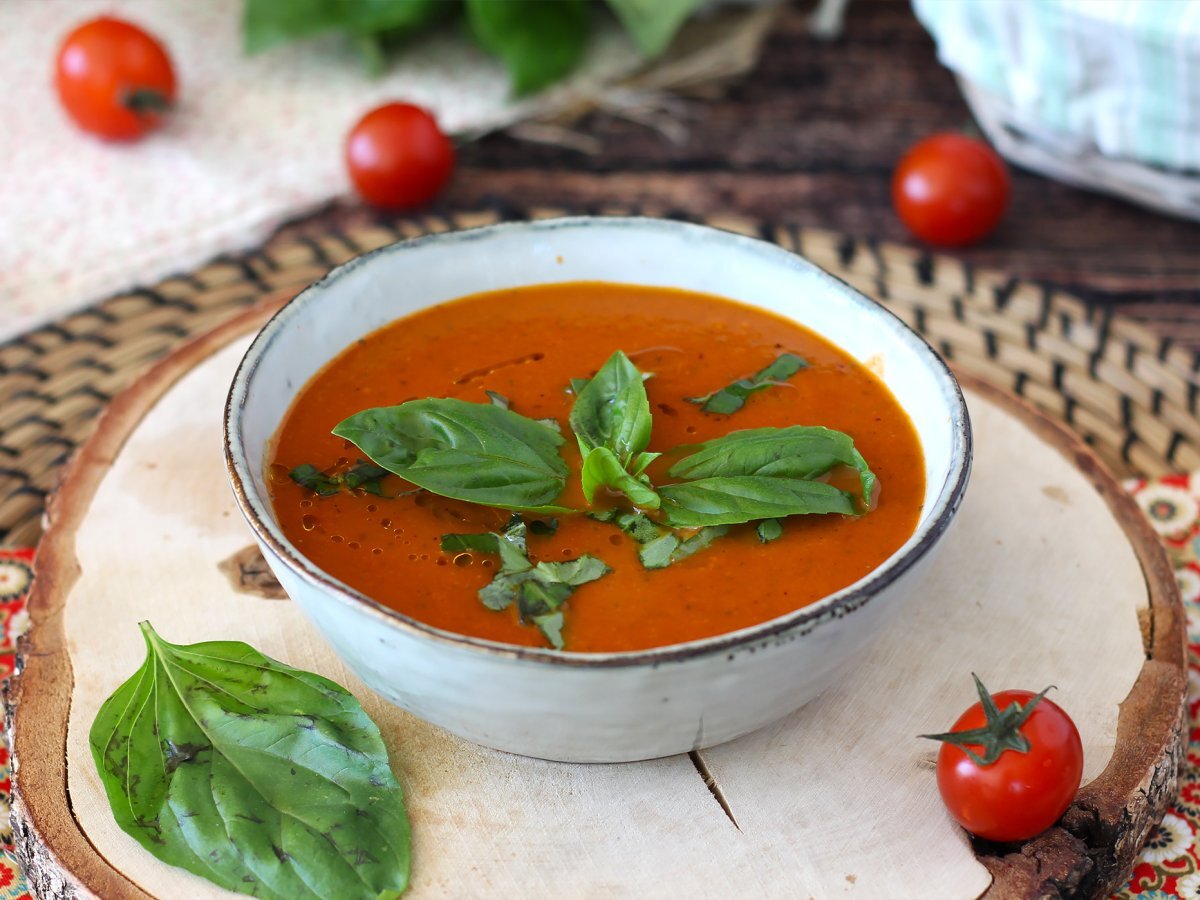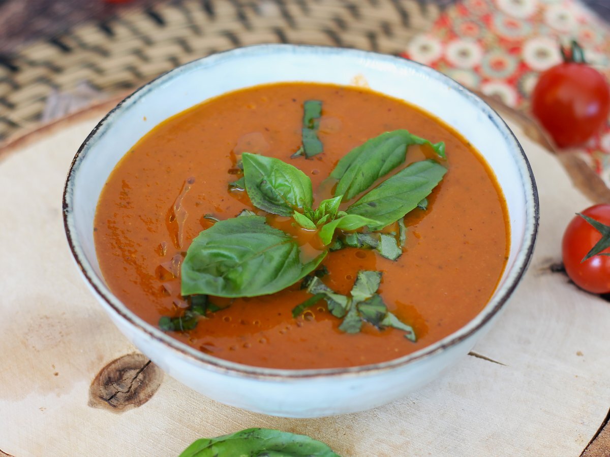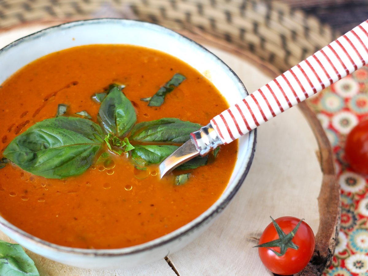 Et si on profitait d'une bonne soupe de tomates toute l'année ? Pour ce faire, on prépare cette recette ultra facile l'été, lorsque c'est la saison de cet ingrédient tant convoité, puis on congèle le tout ;-) On peut vous assurer que cette soupe ensoleillée vous donnera le sourire en plein mois d'hiver ! Et pour parfumer le tout, on n'oublie pas les feuilles de basilic. Suivez le guide avec notre recette expliquée pas à pas ci-dessous