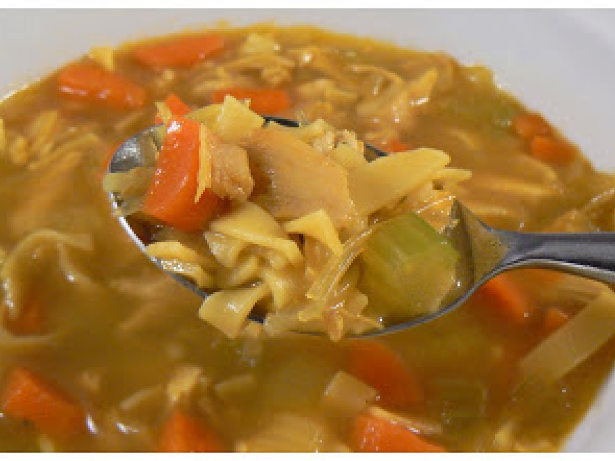 Soupe poulet et nouilles maison PrécédentSuivant Platfacile45 min Envoyer cette recette à un ami Imprimer cette page Poser une question à l'auteur Publier votre photo de cette recette Y'a rien de plus réconfortant qu'une bonne soupe faite maison.Régalez-vous! Ingrédients 1 5-6 tasses (1,25-1,50 L) de bouillon de poulet Curcuma au goût pour dorer le bouillon 1 petite carotte hachée fin 1/2 branche de céleri haché fin 1 petit oignon haché fin ¼ tasse (60 ml) de la partie vert pâle d'un poireau 1 cuillère à thé de beurre ou de margarine ou de l'huile végétale Ciboulette et persil frais,ou séchés au goût Sel et poivre au goût Environ ½ tasse (125 ml) ou moins de nouilles à soupe Poulet cuit émincé au goût, environ 1/2 tasse (125 ml) Herbes salés au goût (Facultatif)