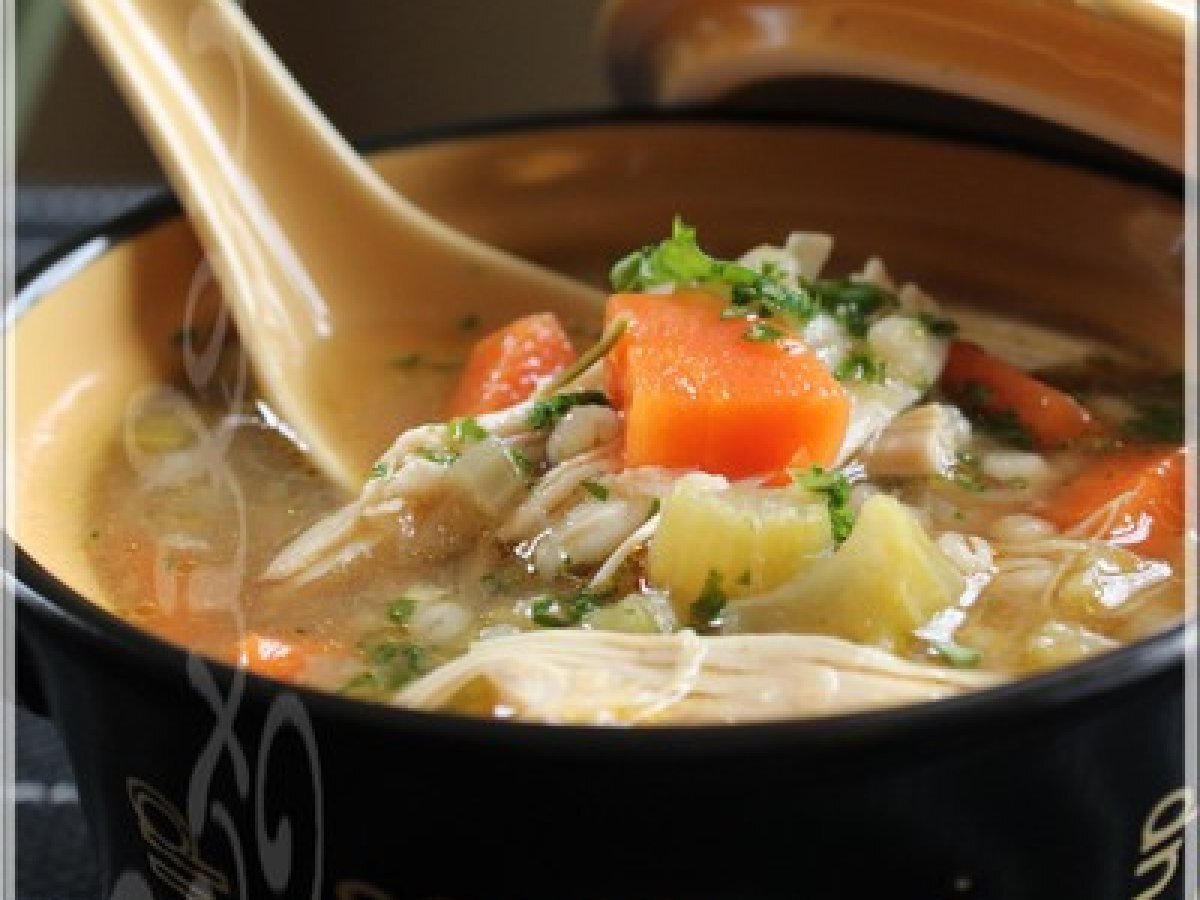 Soupe réconfortante à l'orge et au poulet