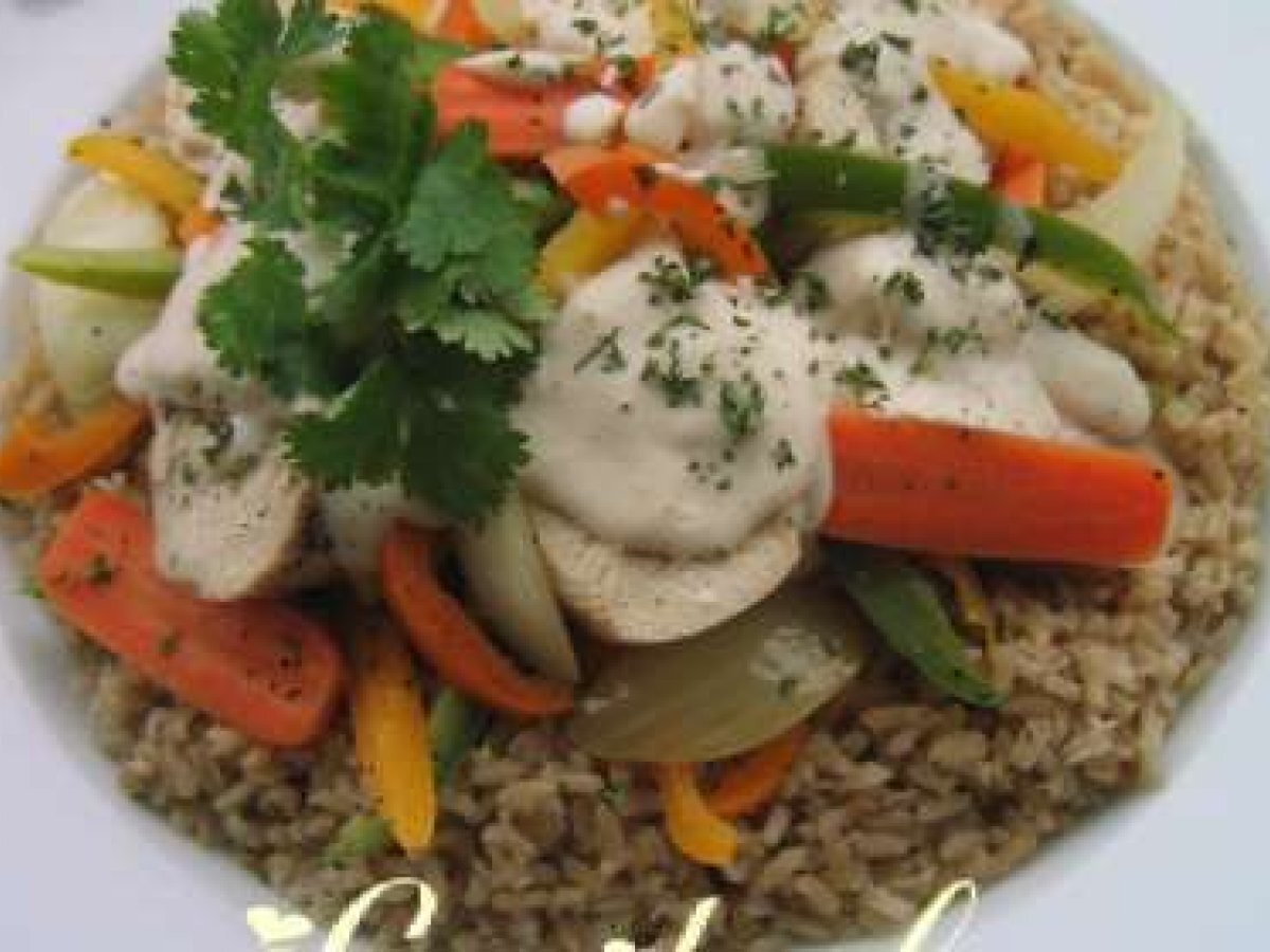 Souper de poulet campagnard PrécédentSuivant Platfacile55 min557 Kcal Envoyer cette recette à un ami Imprimer cette page Poser une question à l'auteur Publier votre photo de cette recette Ingrédients 4 1/4 tasse de farine 1/2 c. à thé de poivre 4 petites demi-poitrines de poulet avec l'os, sans la peau (1-1/2 lb ou 675 g) 1/4 tasse de vinaigrette Italienne piquante Calorie-Wise Kraft 2 tasses de carottes miniatures 1 oignon, coupé en quartiers 1 bte (10 oz liq. ou 284 ml) de bouillon de poulet avec 25 % moins de sodium, divisée 1 tasse de riz brun à grain long, non cuit 1/4 tasse de tartinade de fromage à la crème Philadelphia légère 2 c. à soupe de persil frais, haché