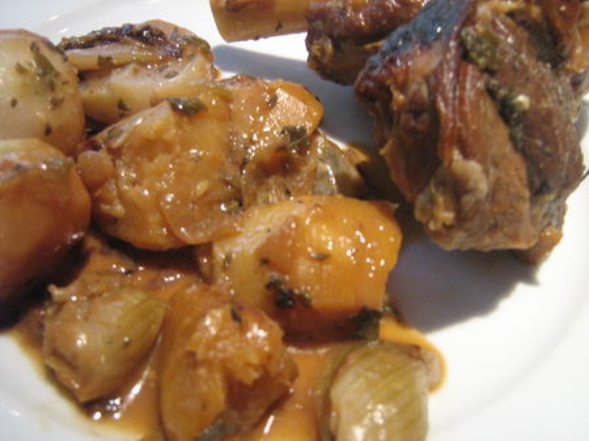 La souris est un délice, tendre et goûteux, fondante en bouche et les navets qui l'accompagnent se sont imprégnés du goût des aromates et du jus de viande.