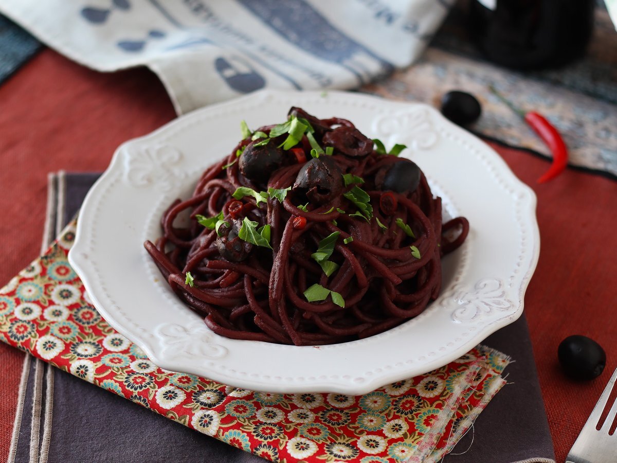 Quand les spaghettis s’imprègnent du vin rouge et s’enrichissent de piment, d’olives noires et de fromage affiné, ça donne un plat qui envoie du lourd! Imaginé par le chef Luigi Ammirati, ce classique revisité de la cuisine calabraise promet une explosion de saveurs entre notes épicées et arômes profonds du vin. Le piment réveille les papilles, le fromage apporte une touche crémeuse, et le tout s’équilibre à merveille pour un résultat intense et gourmand. Si vous aimez les recettes qui ont du caractère, c’est celle qu’il vous faut :)