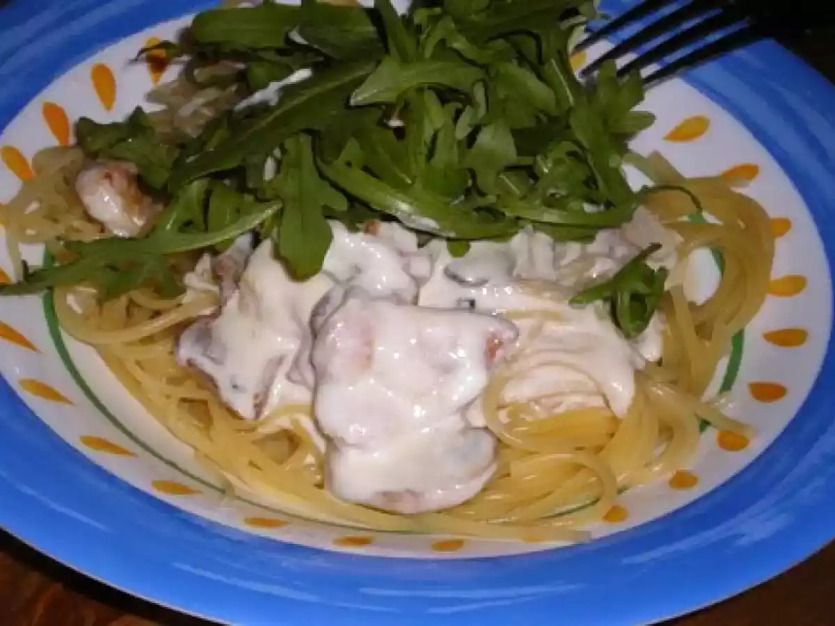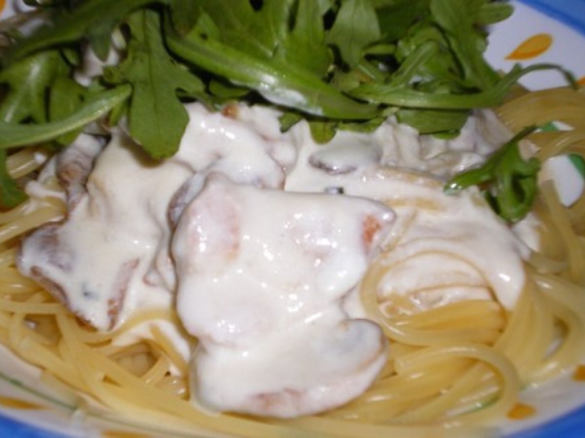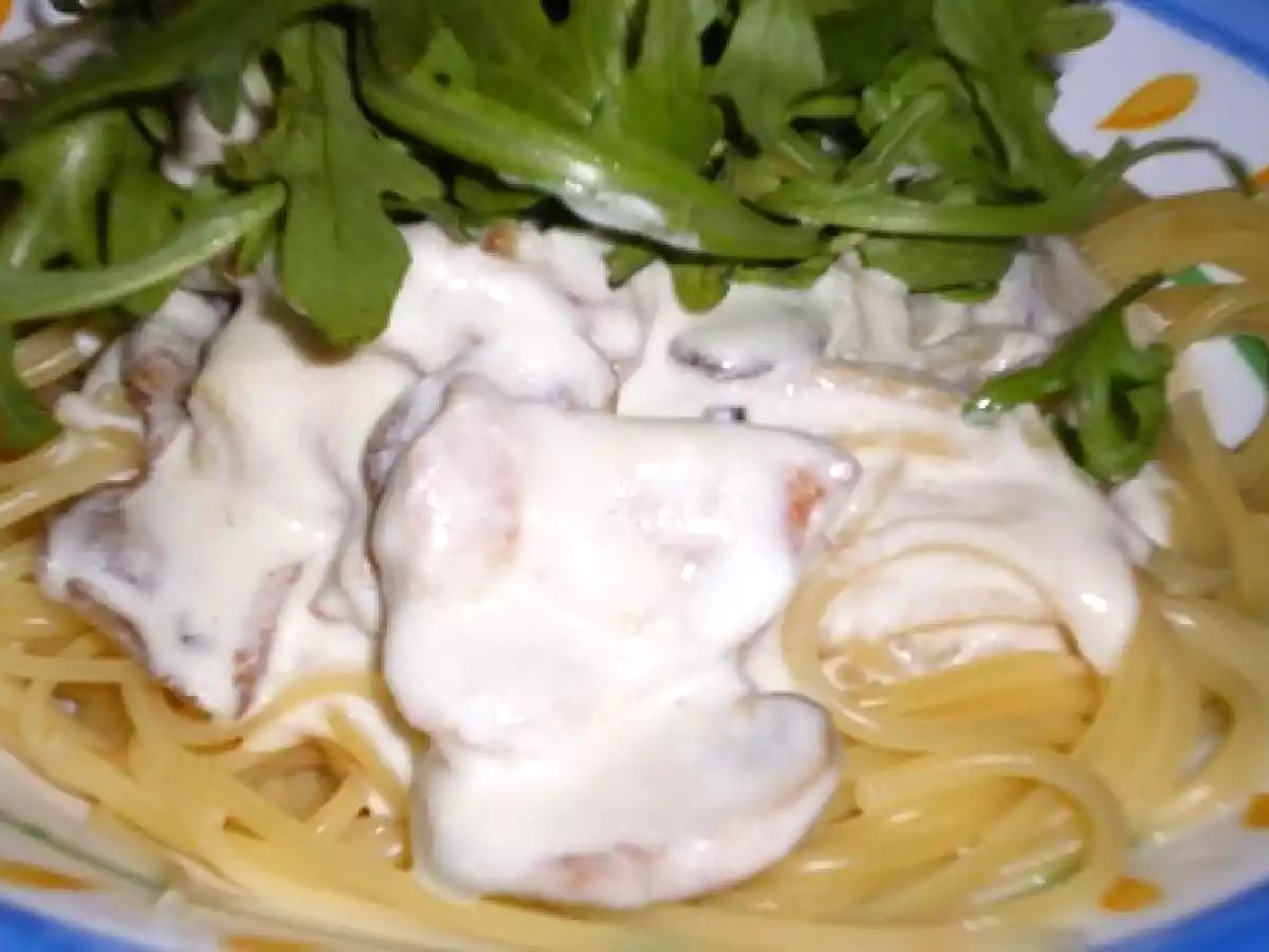 Spaghetti au poulet au champignons et à la crème de parmesan