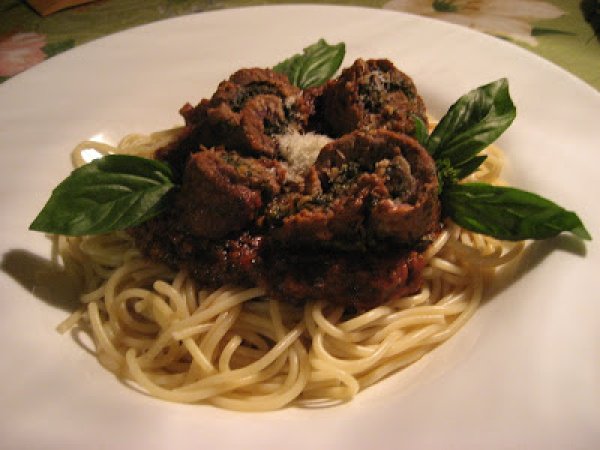 Spaghetti en sauce à la viande roulée suprême ail, ail, ail et persil