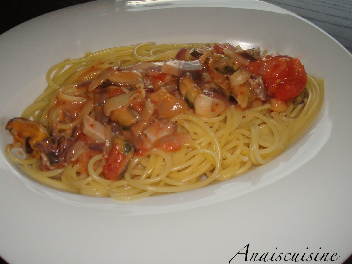 Spaghettis aux fruits de mer, piment d'espelette