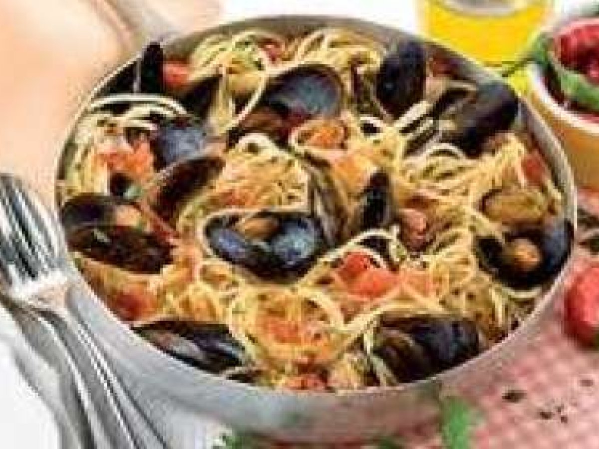 Spaghettis aux moules PrécédentSuivant Platmoyen35 min432 Kcal Envoyer cette recette à un ami Imprimer cette page Poser une question à l'auteur Publier votre photo de cette recette Ingrédients 5 500g de Spaghettis. des moules. du poivre. du sel. de la ciboulette. du persil. de l'ail. de l'huile de tournesol+ huile d'olive. du vin blanc. Coût estimé: 3.56Euros€ (0.71€/part)