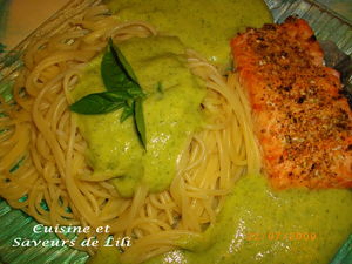 Spaghettis et pavés de saumon, sauce courgette et chèvre Platfacile1 h 5 m660 Kcal Envoyer cette recette à un ami Imprimer cette page Poser une question à l'auteur Publier votre photo de cette recette Ingrédients 4 4 portions de spaghettis 4 pavés de saumon 2 cuillères à café d'épices gingembre et agrumes (Ducros) Quelques feuilles de basilic 1 cuillère à soupe d'huile d'olive 1 oignon 1 belle courgette 4 cuillères à soupe de crème allégée à 3% 50 g de fromage de chèvre Ste Maure Sel et poivre Coût estimé: 10.85Euros€ (2.71€/part)